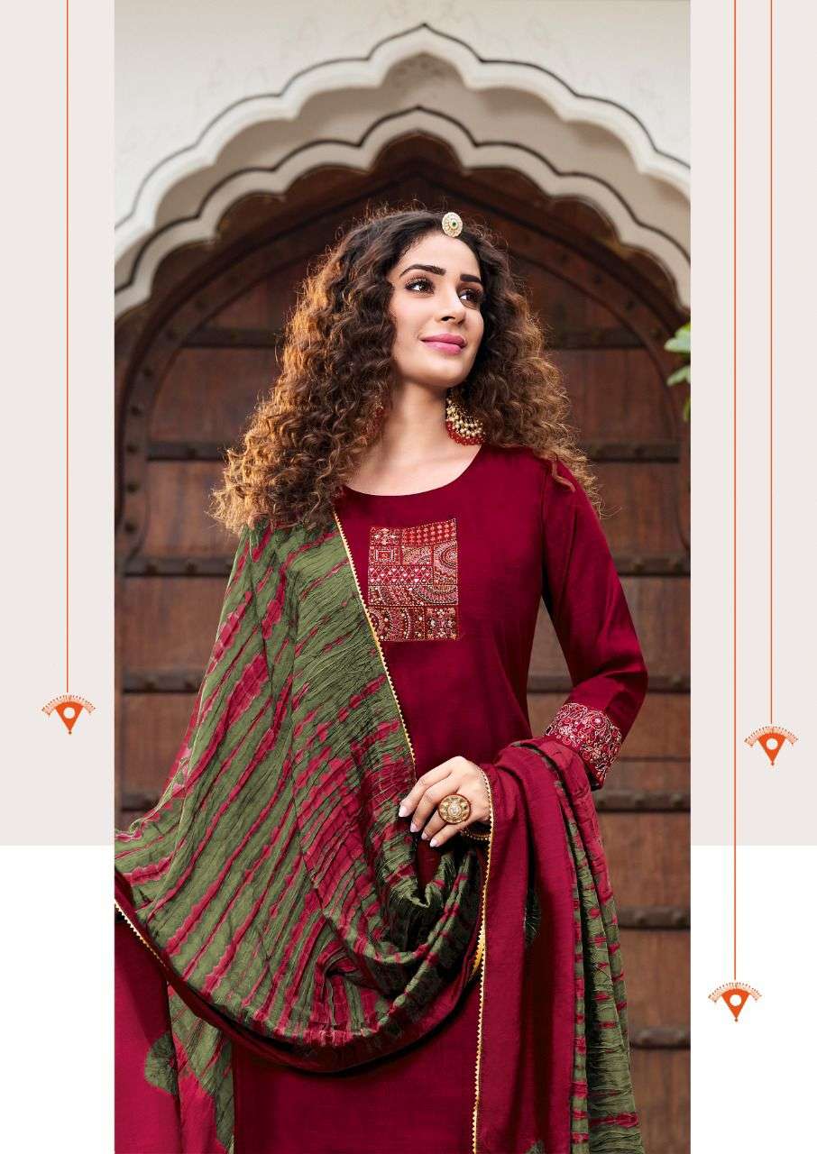 KOODEE Launching Kurti Pant With Dupatta Sets Contrans Patch Style Brand Name : KOODEE Catalog : Saheli -16 Designs : 6 Fabric:- Bottom :- Cotton Slub Lining Lycra With Embroidery Work Duppata :- Shibori Dupatta Work: Embroidery + Khatli Work Size : S(36),M(38), L(40), XL(42), 2XL(44), 3XL(46) |