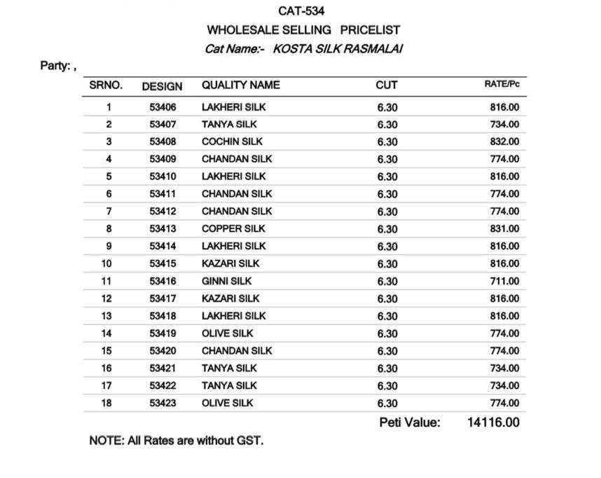 BOOK CATALOGUE KOSTA SILK RASMALAI ON KRISHNA CREATION. CALL ON +91-8866778727.