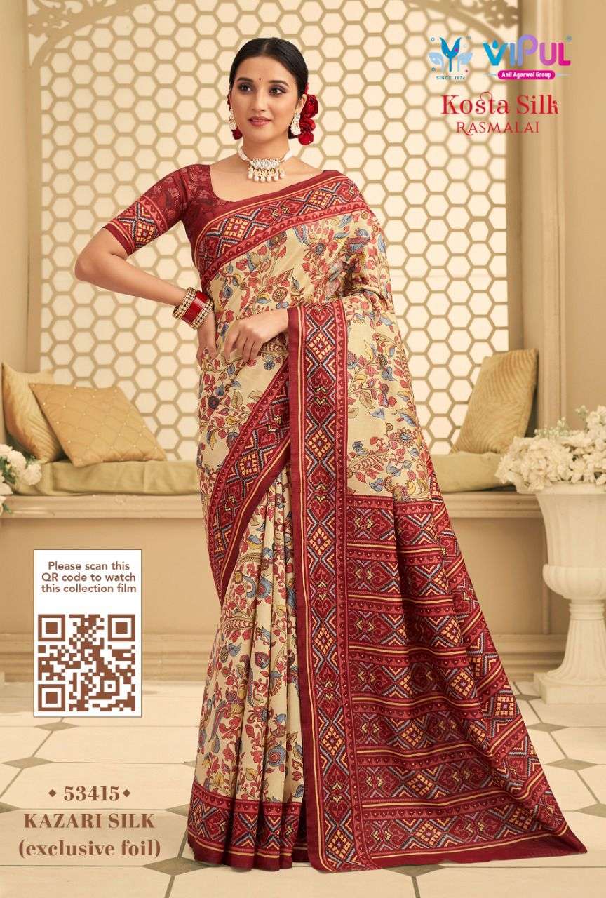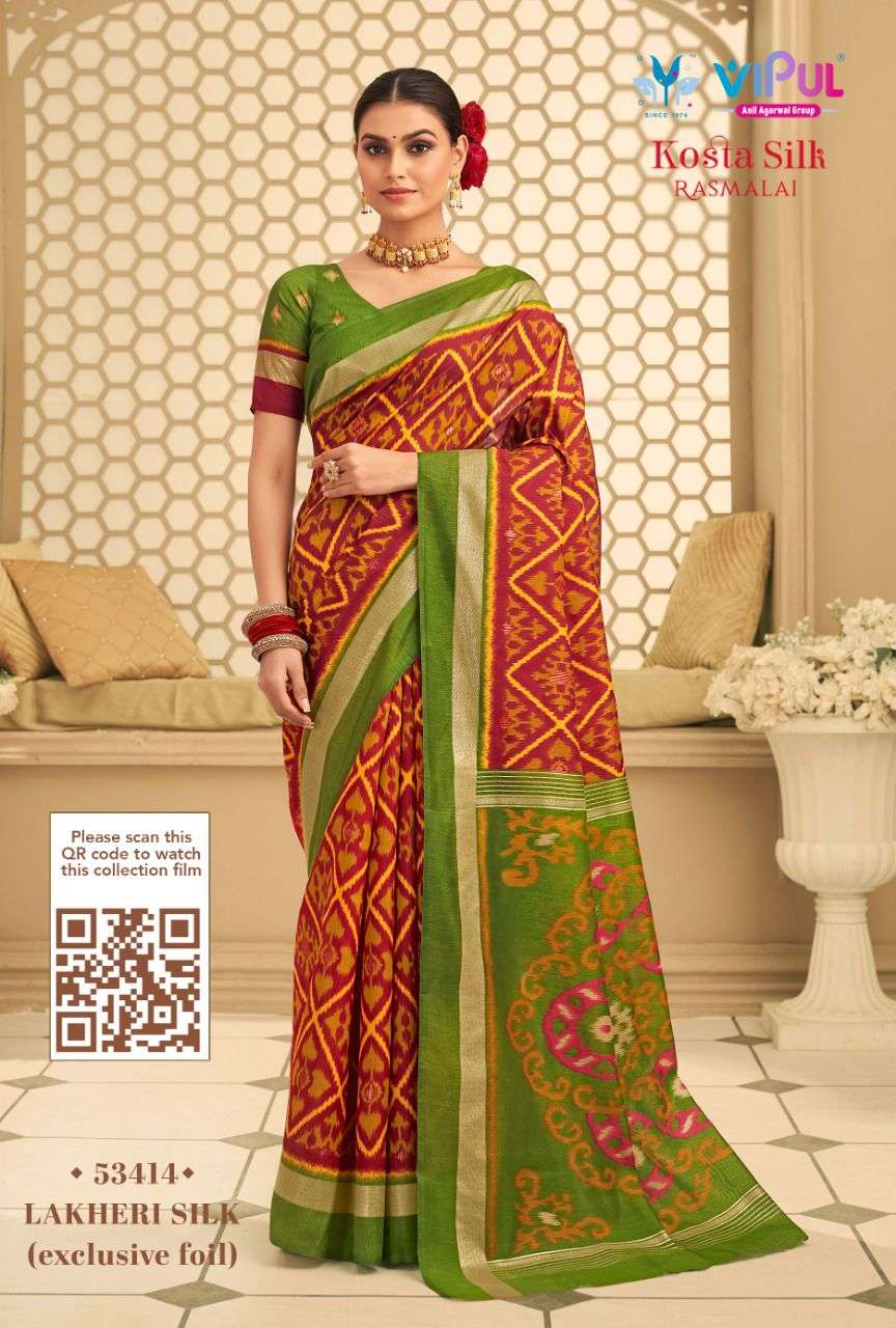 kosta silk rasmalai by vipul silk cotton summer wear fancy sarees
