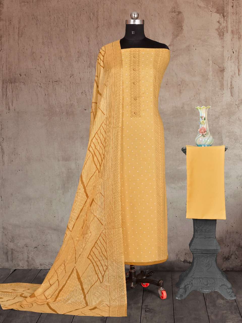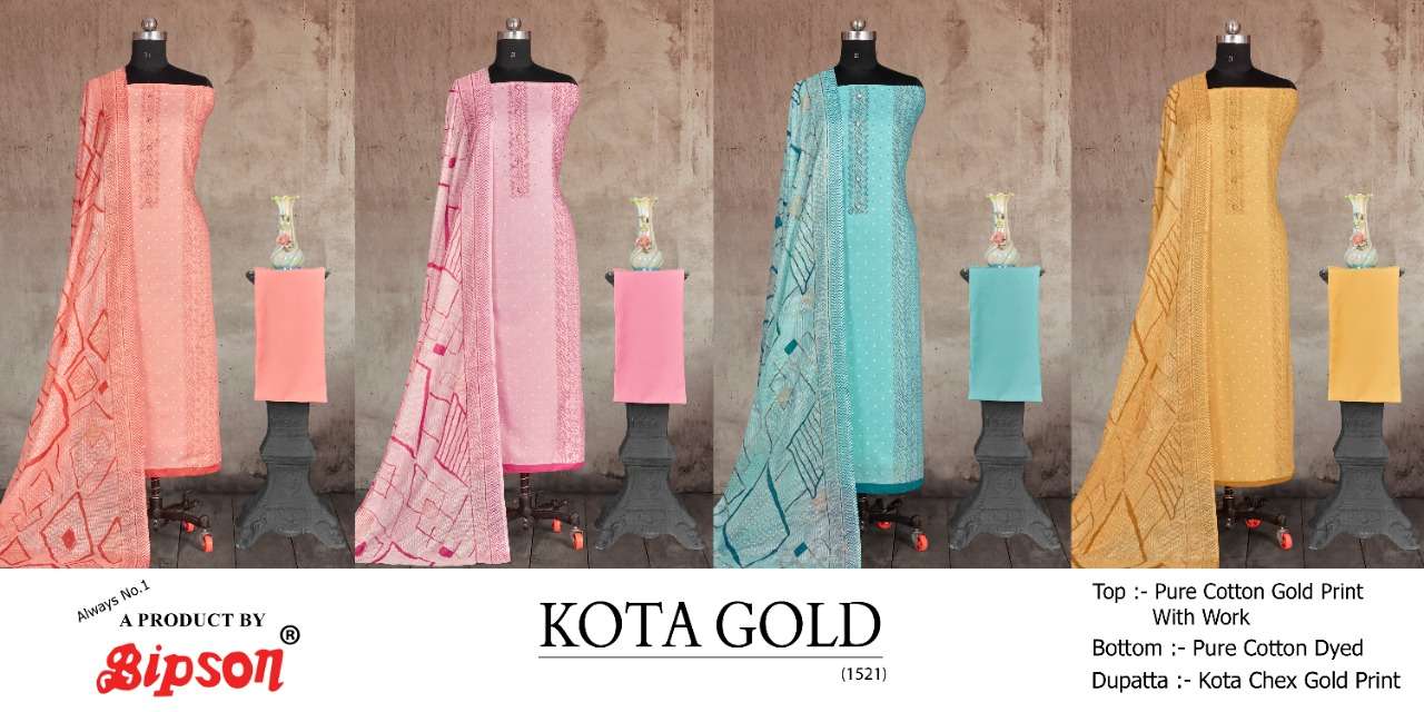 BIPSON  Brings ..... Premium Cotton Collection     KOTA GOLD       DN NO1521 TOP :- _ Pure Cotton GOLD Print With Work .2.5MTR BOTTOM :- _Pure Cotton Dyed .2.7mtr DUPATTA :- _ KOTA CHEX GOLD Print .2.25mtr Rate 499/- only per pcs Set to set |