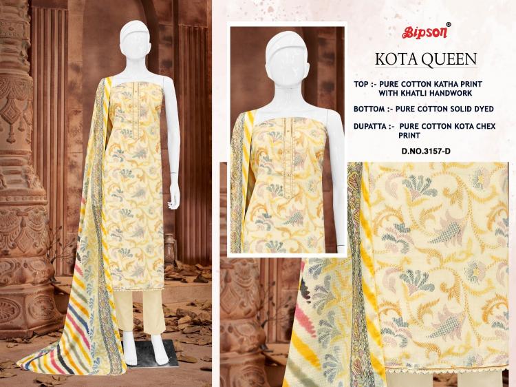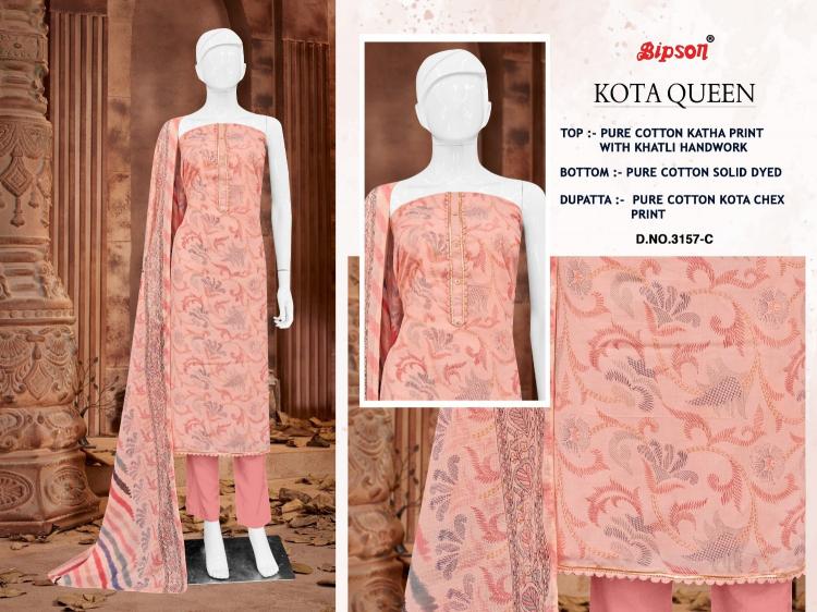 kota queen 3157 by bipson prints cotton katha print unstitch suit