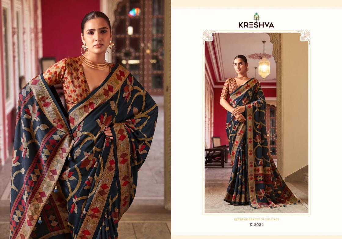 kreshva aarini charukriti floral luxurious silk sarees for women