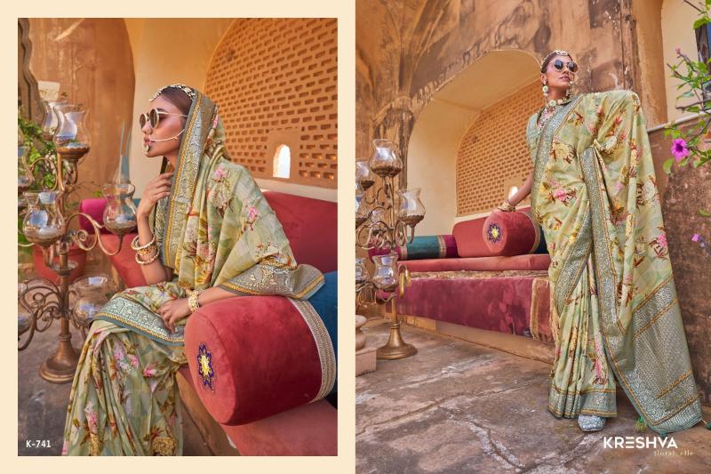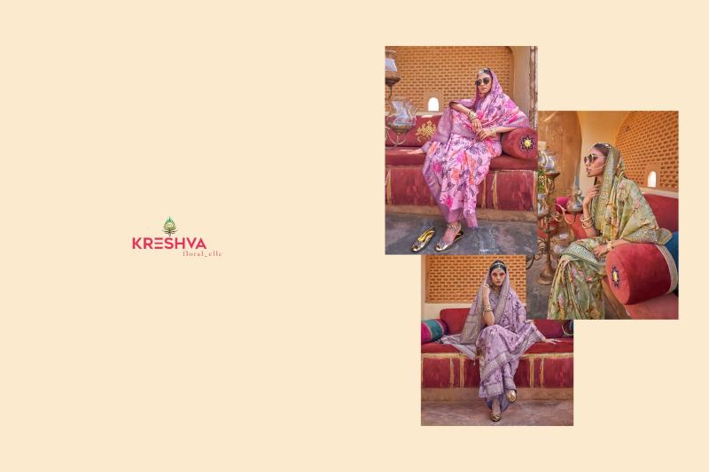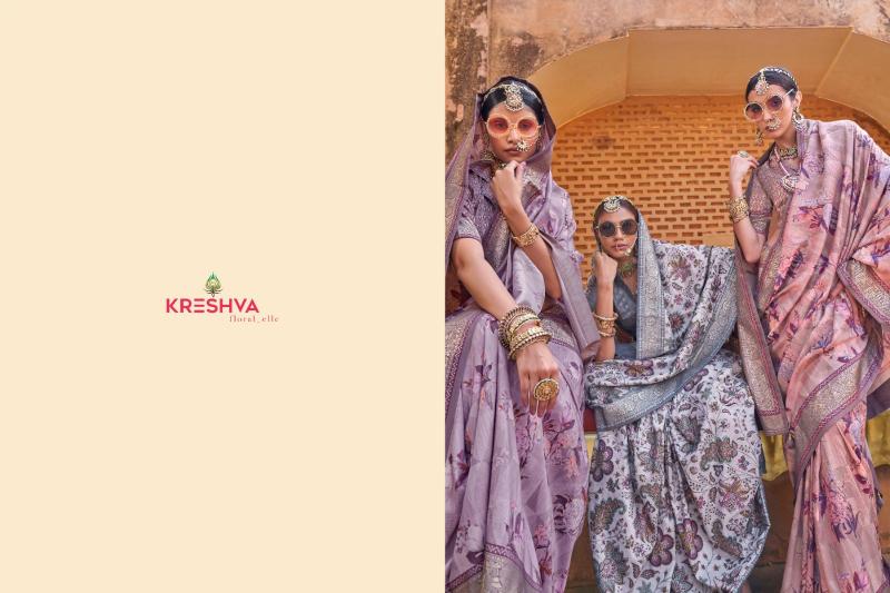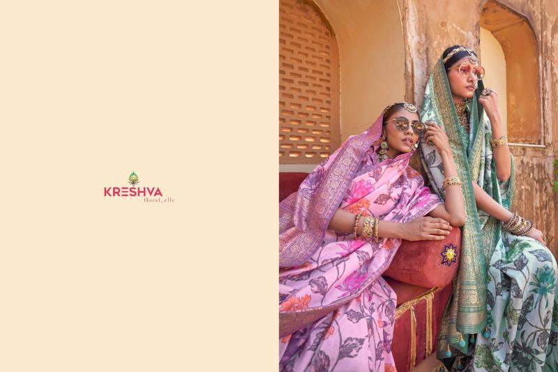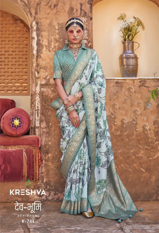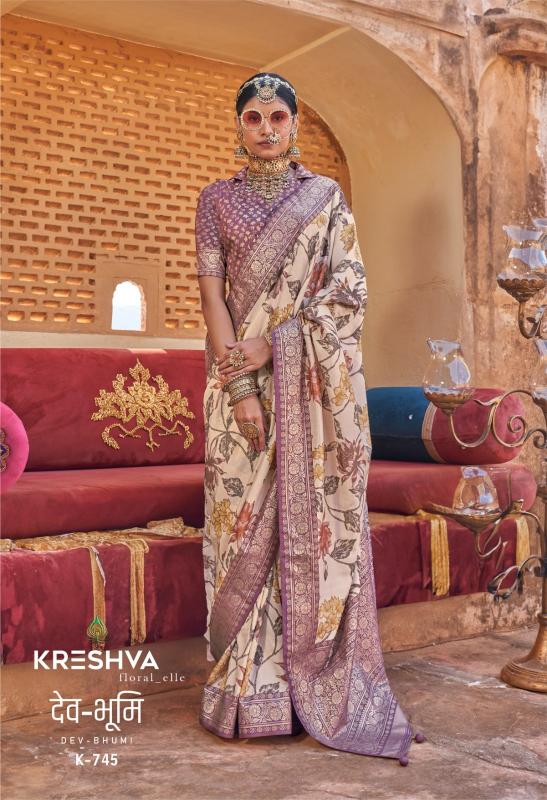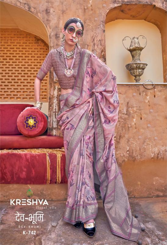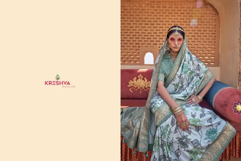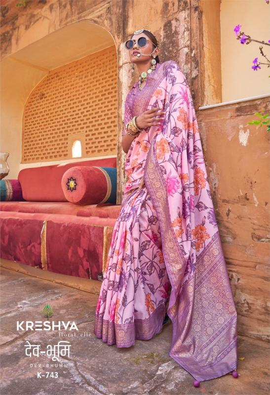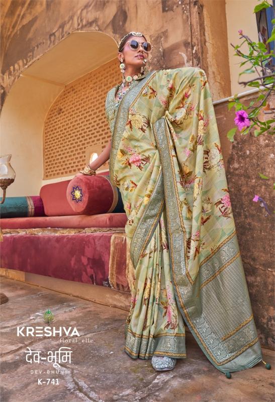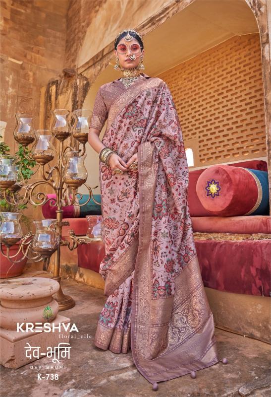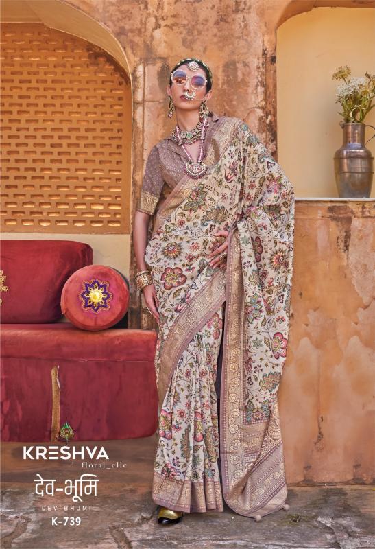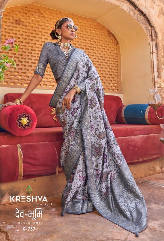 kreshva dev bhumi super silk smart floral print party wear elegant saree