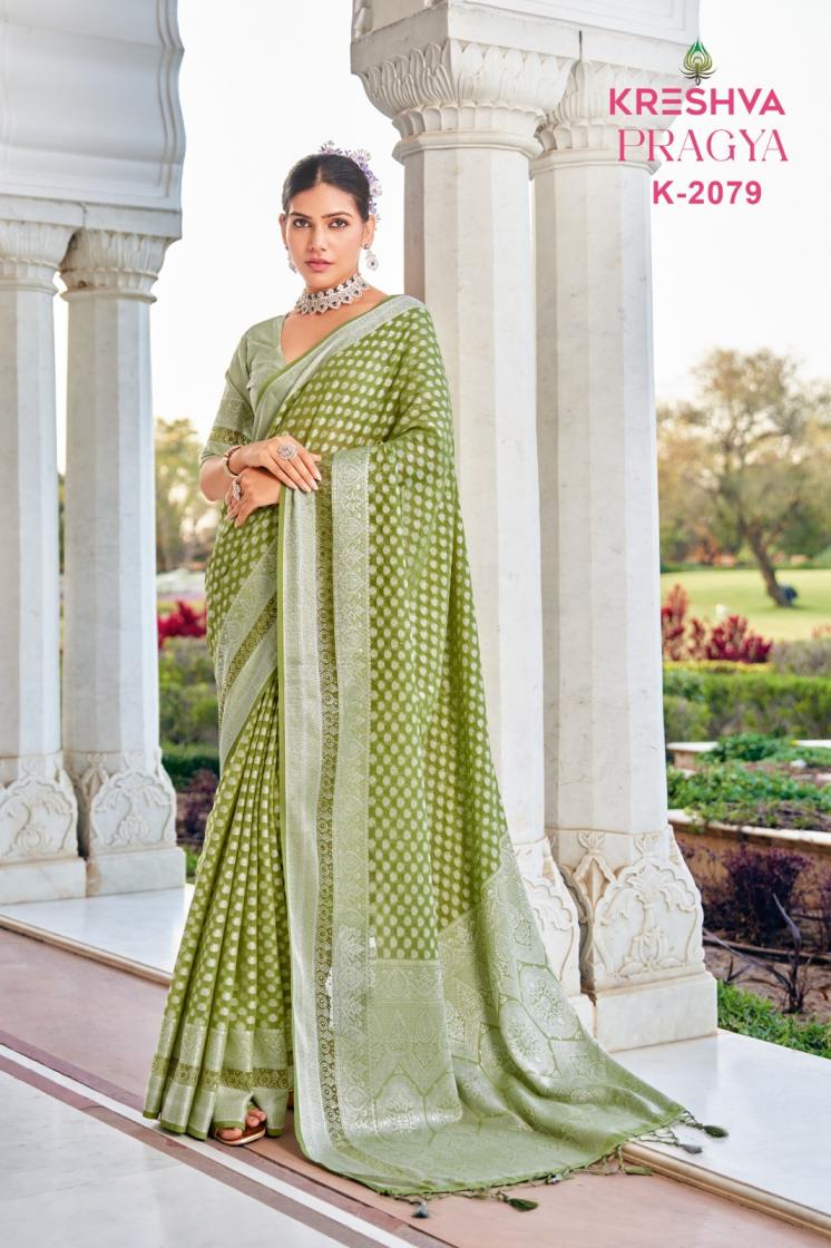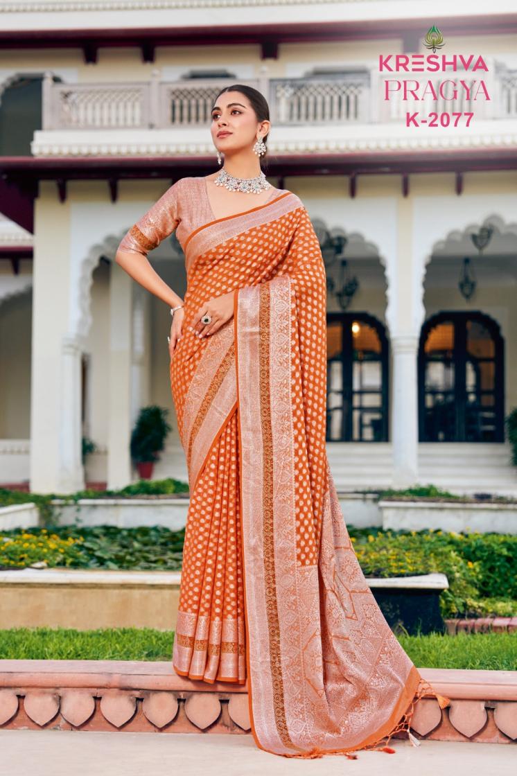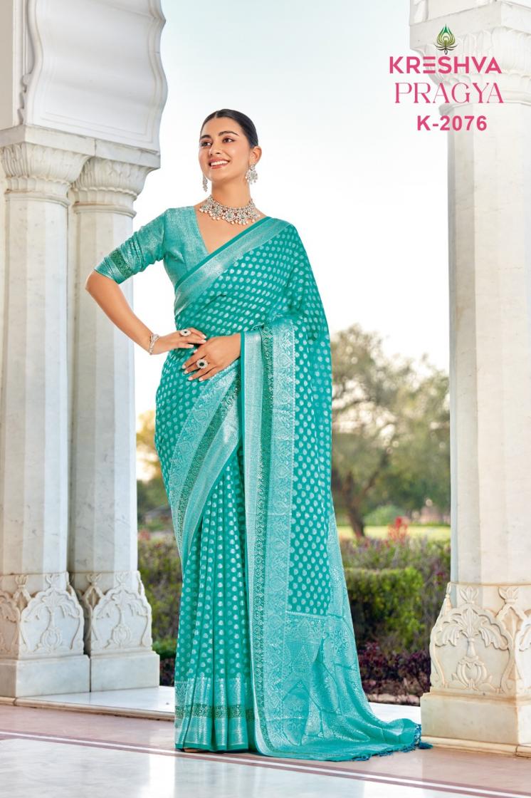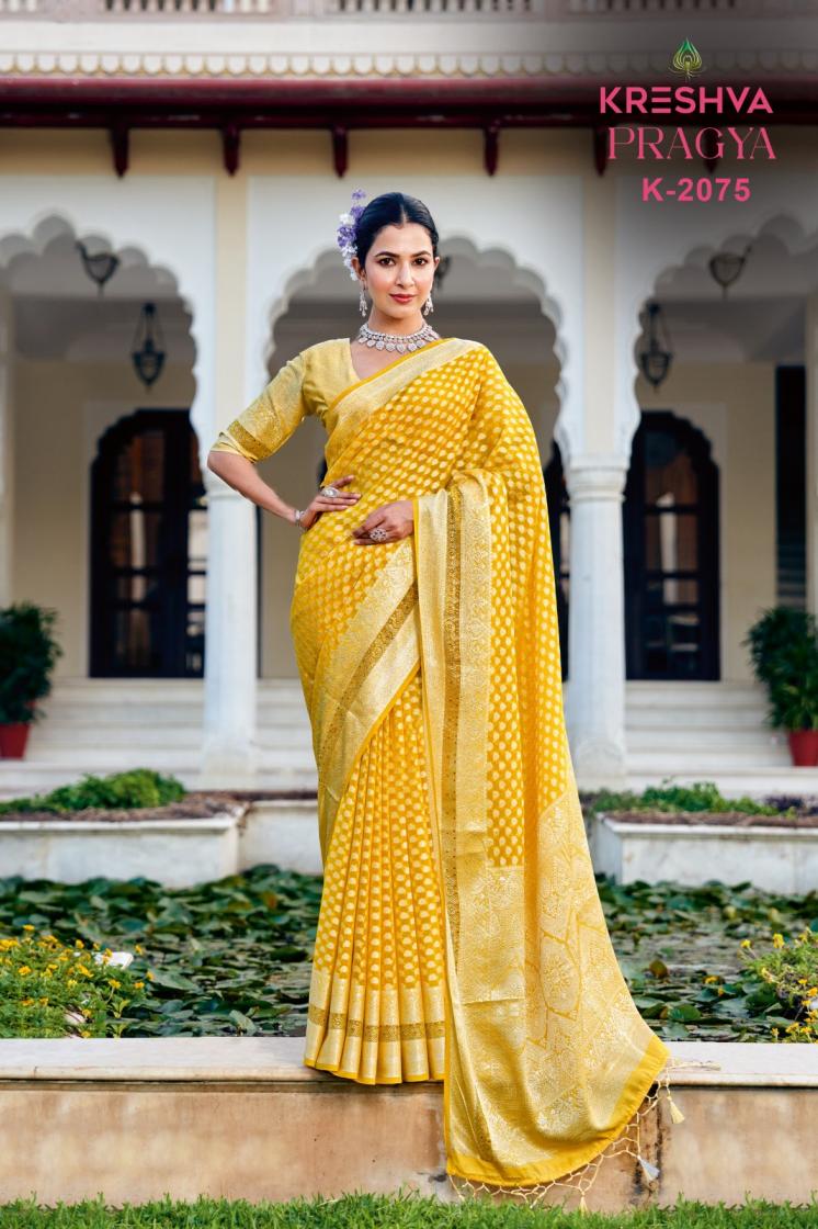 Brand : Kreshva Catalog Name : Pragya Series : 2075 TO 2080 Saree Fabric : Twp Georgette With Weaving Buta Border Pallu With Premier Coating And Soft Touch Finish With Stone Work Blouse : Twp Georgette With Weaving Buta Price :- 1495/- 5% Gst Occasion : Party Wear, Uniform Wear,Carnival Wear |