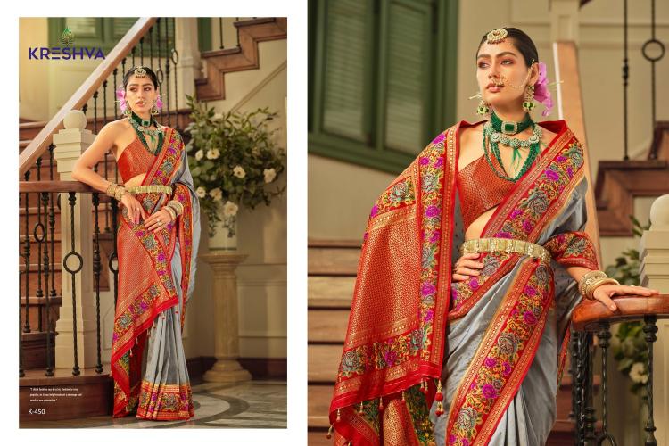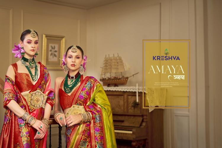 kreshva presents amaya banarasi silk party wear saree with blouse