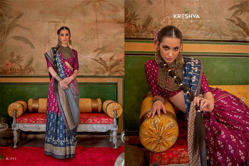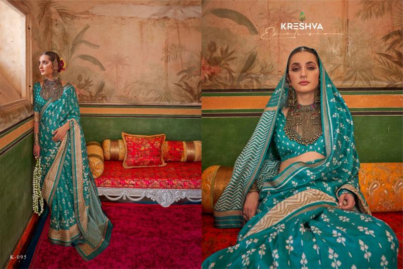 A Delicate And Lightweight Fabric Known For Its Sheer Texture And Smooth Feel. Sigma Silk Is Revered For Its Luxurious Appearance And Is Often Used In Creating Premium Traditional Indian Attire. Brand : Kreshva Catalog :Preyasi Design No : K 086 to K-96 Price :- 695/- 5% Gst Extra Saree Fabric :-Mercerized Sigma Silk Traditional Classic Design With Aqua Finish Blouse Fabric :-Mercerized Sigma Silk Occasion: Uniform Wear, Daily Wear |