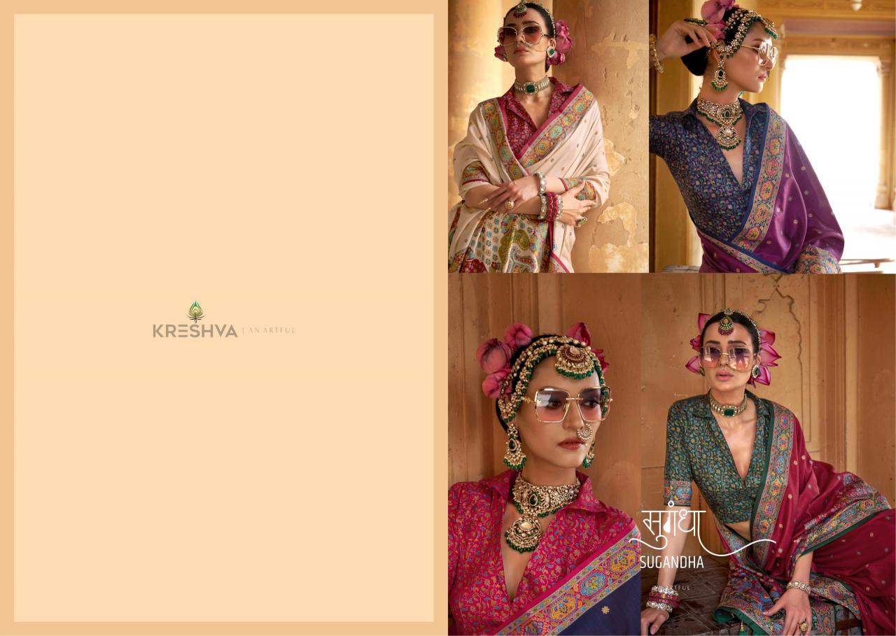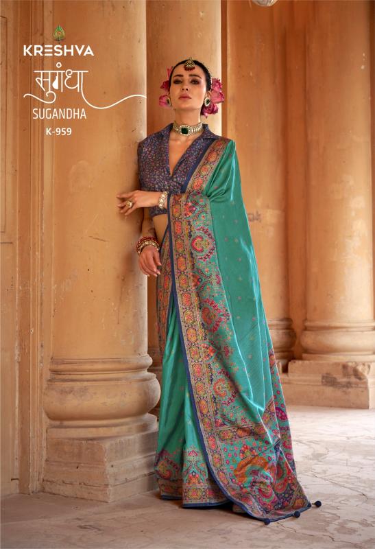 Brand : Kreshva Catalog: Sugandha Series : 957 to 962 Saree : High Quality Super 2007 P.V Silk With H. B. Luxury Print With GloryFinish Blouse : Super P.V Silk Price : 995/- +5%GST Occasion : Party Wear ,Festival Wear |