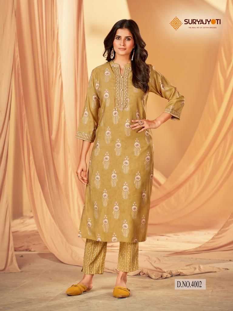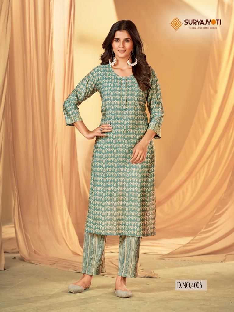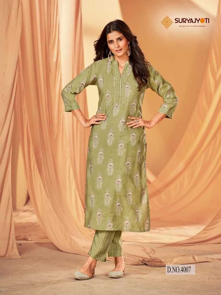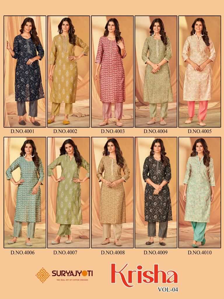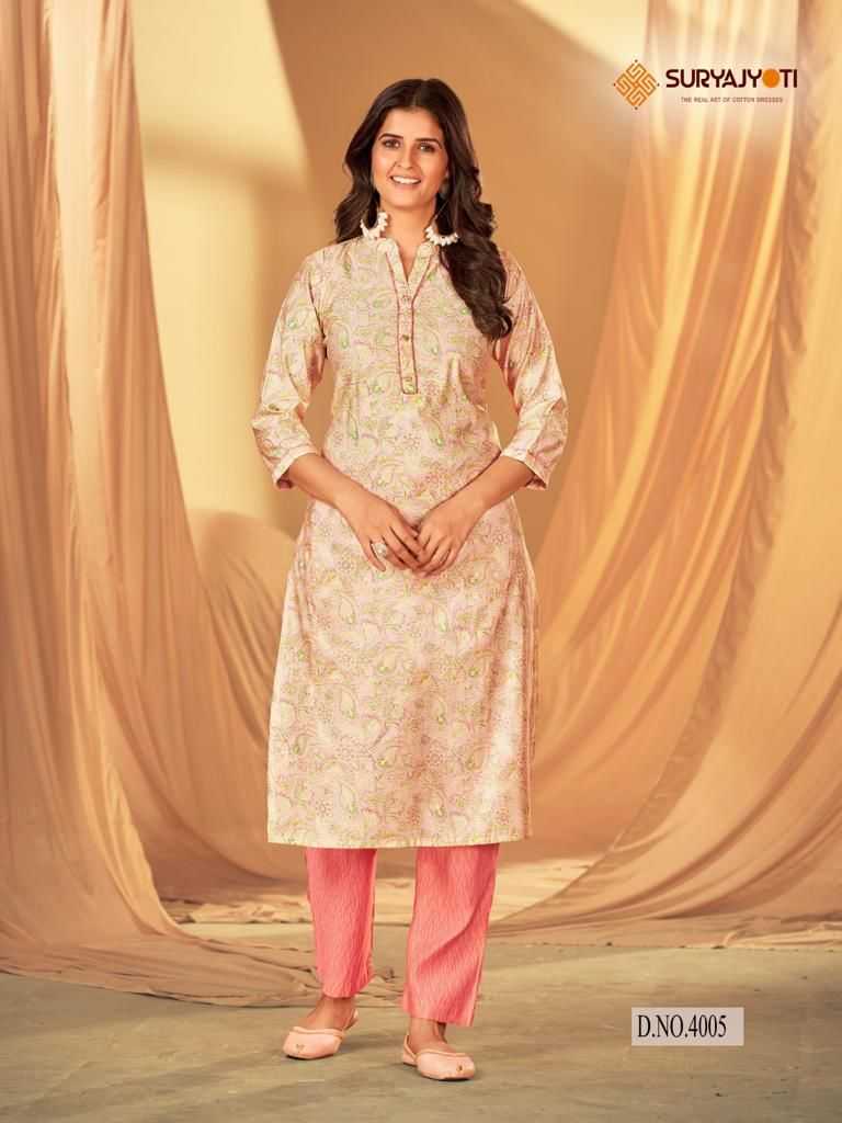 krisha vol 4 by suryajyoti fancy modal silk kurti with pant catalog