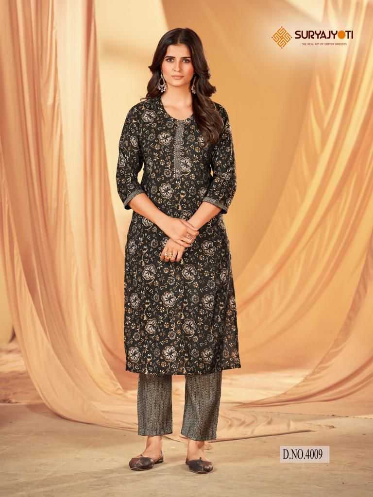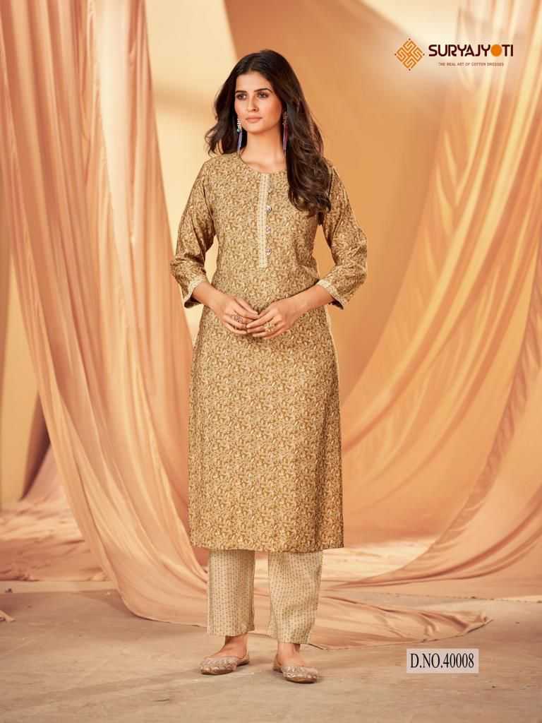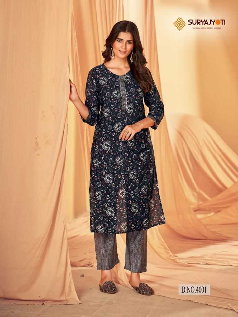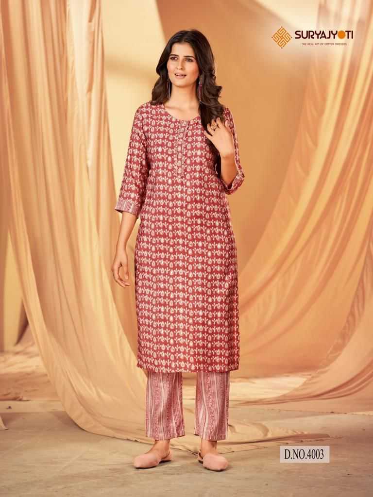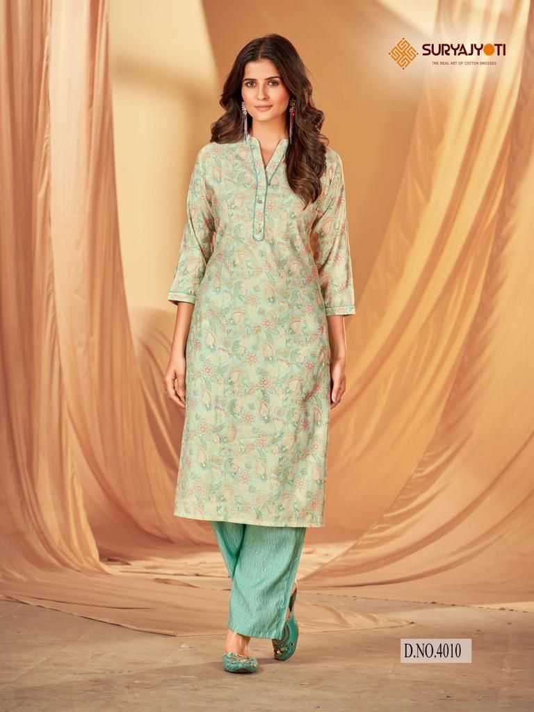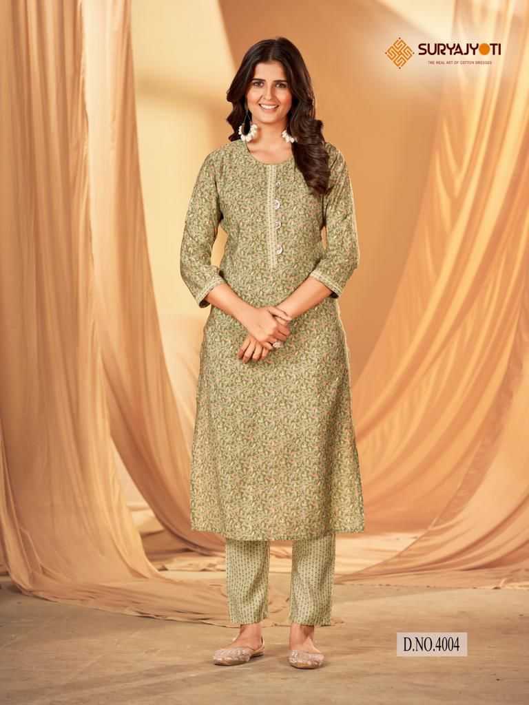 krisha vol 4 by suryajyoti fancy modal silk kurti with pant catalog