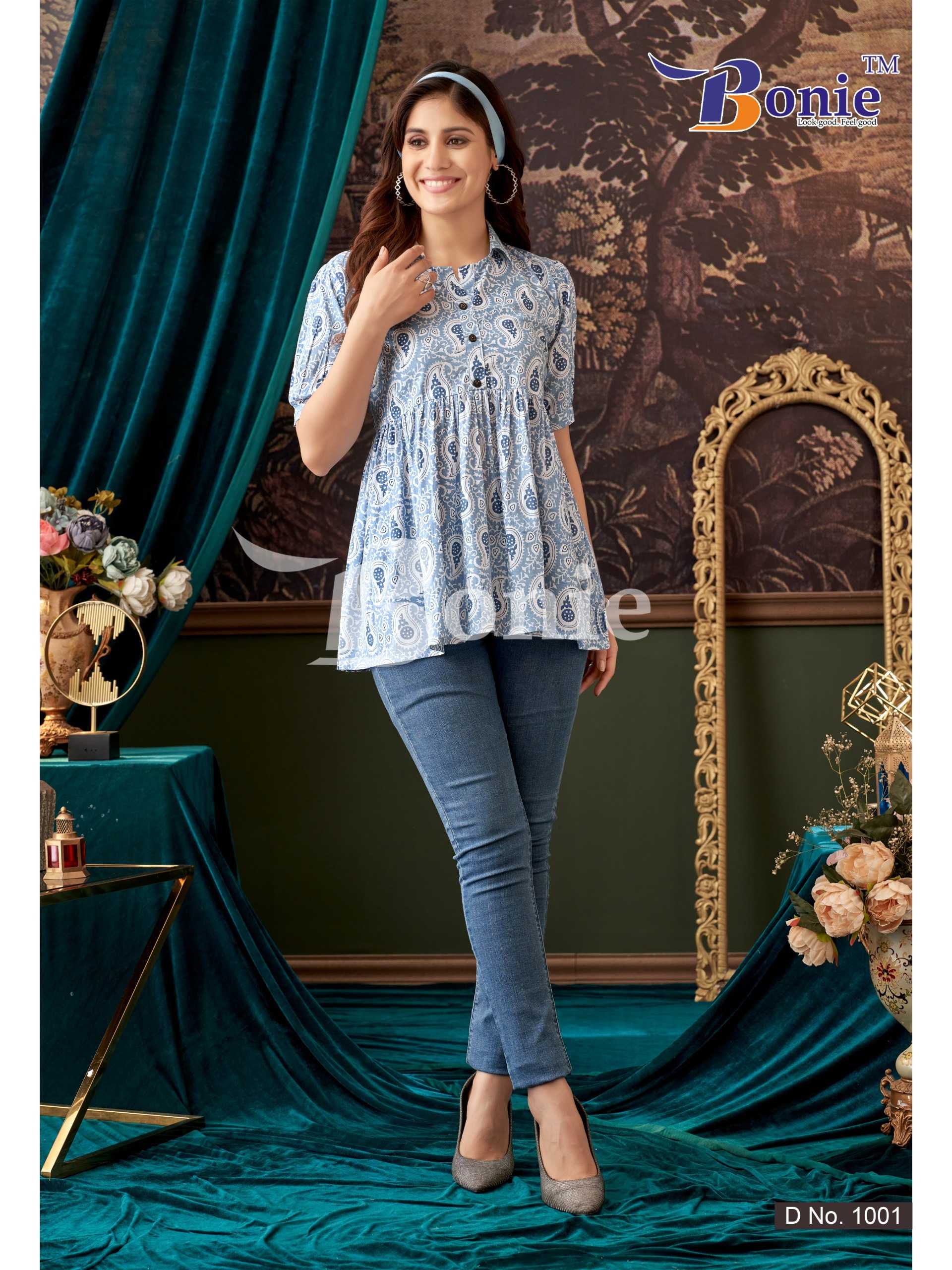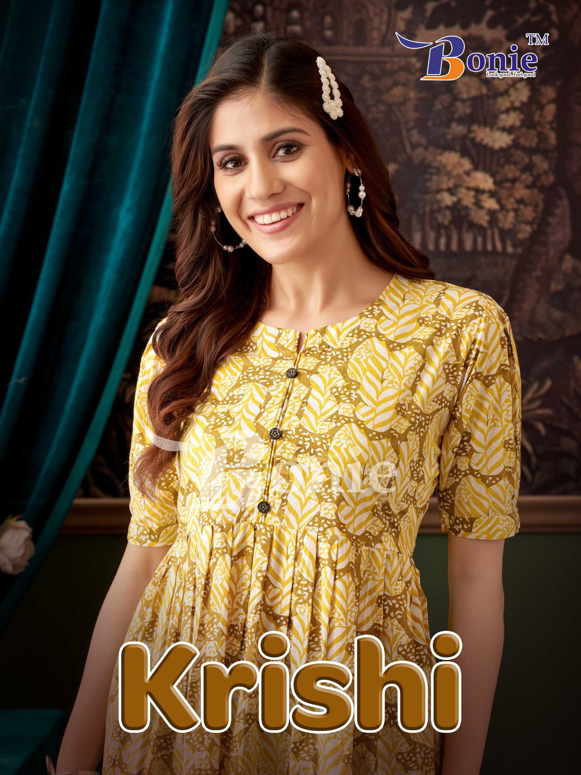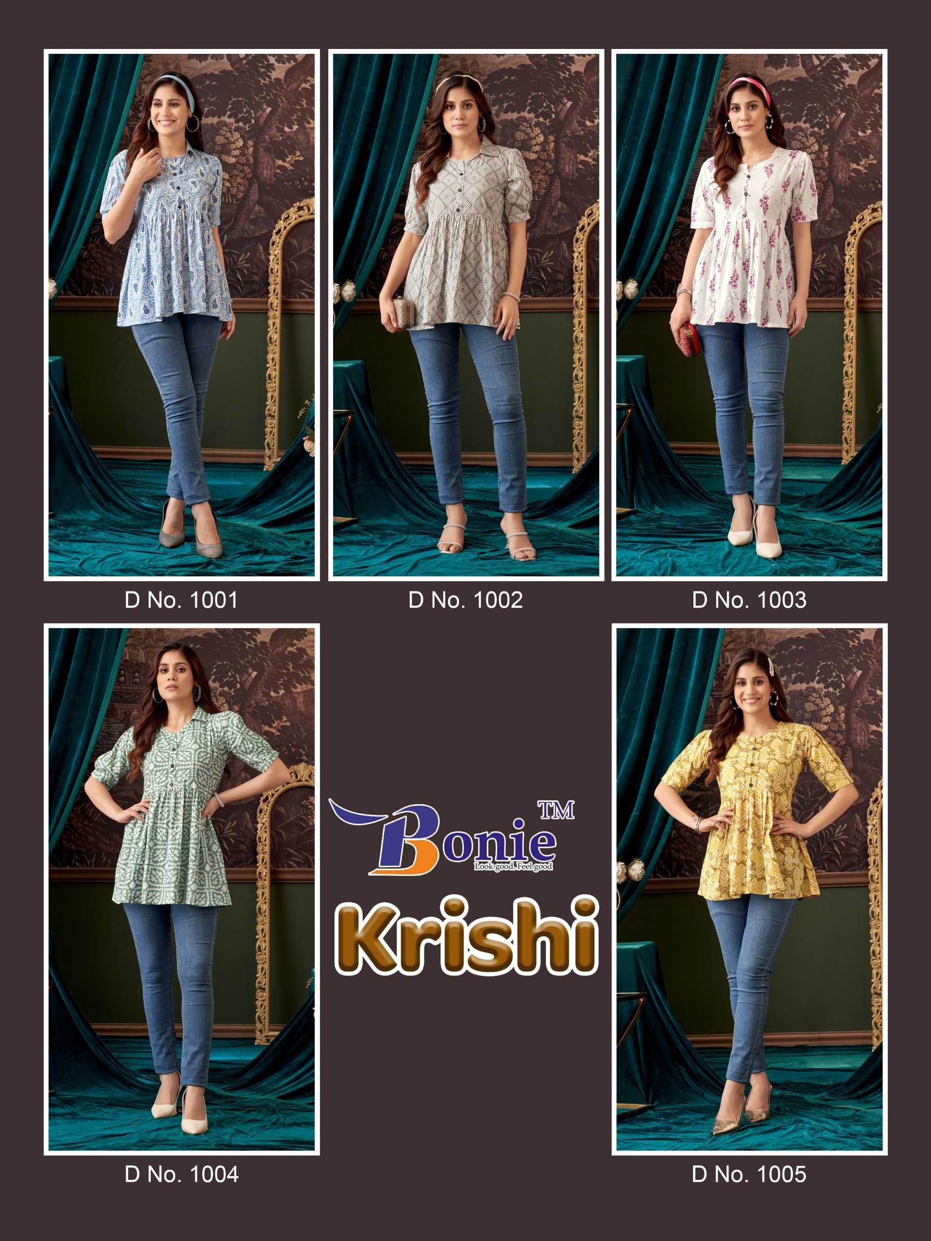 krishi vol 1 by bonie amazing neck pattern stylish outfit look full stitch short top exports