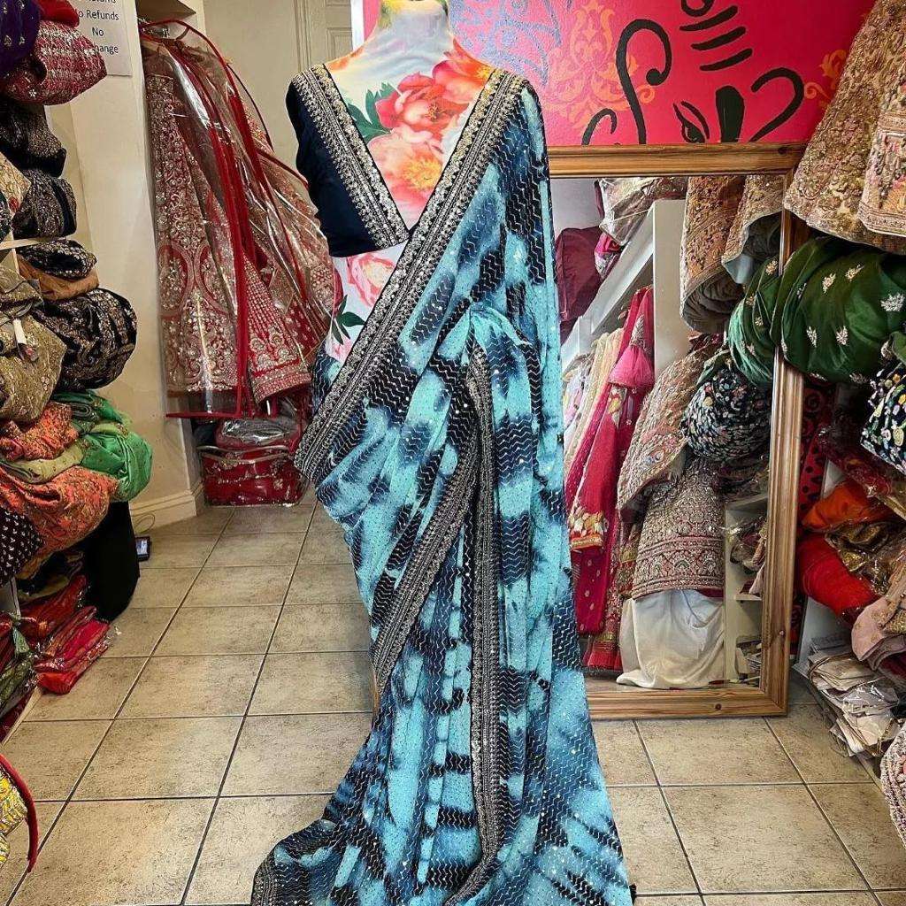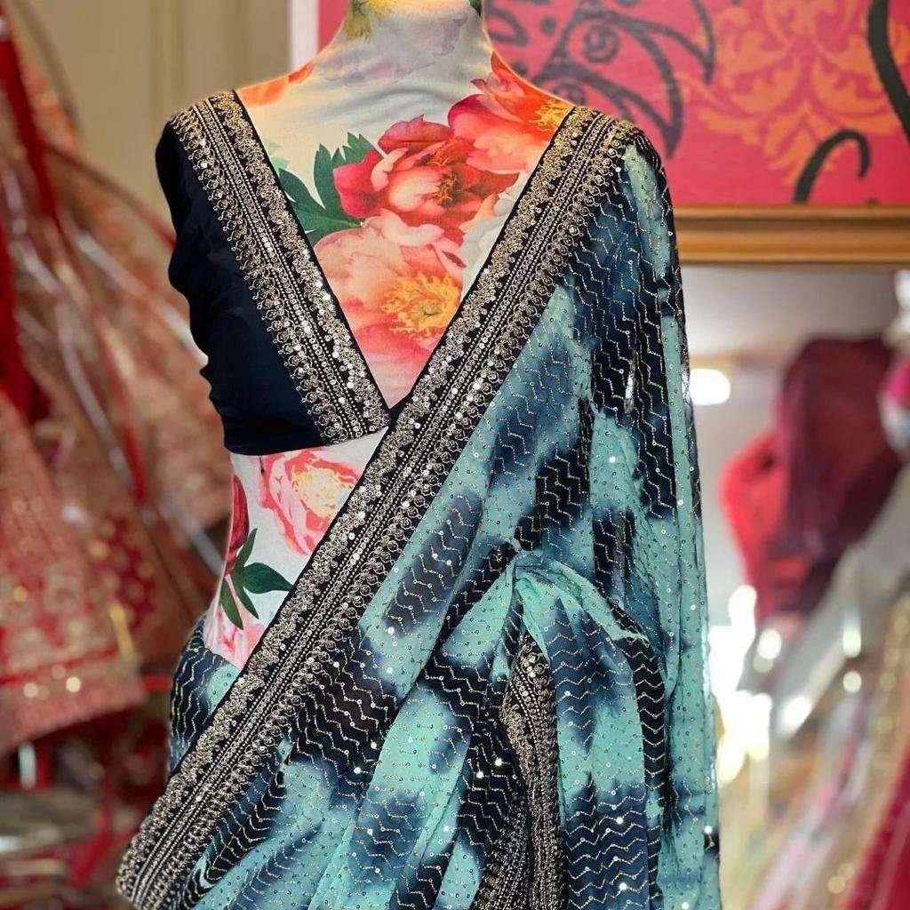 New BlockBuster Sequins Design Launching CODE-PR 3274 Fabric Details Full Saree Of Heavy quality 60 gram Georgette With beautiful digital print sibori Style Heavy 5MM Sequins & Zari Embroidery work in saree Lace border details Blouse Details 2-PLAIN BLACK COLOUR MONO BANGLORI SILK Premium Quality |