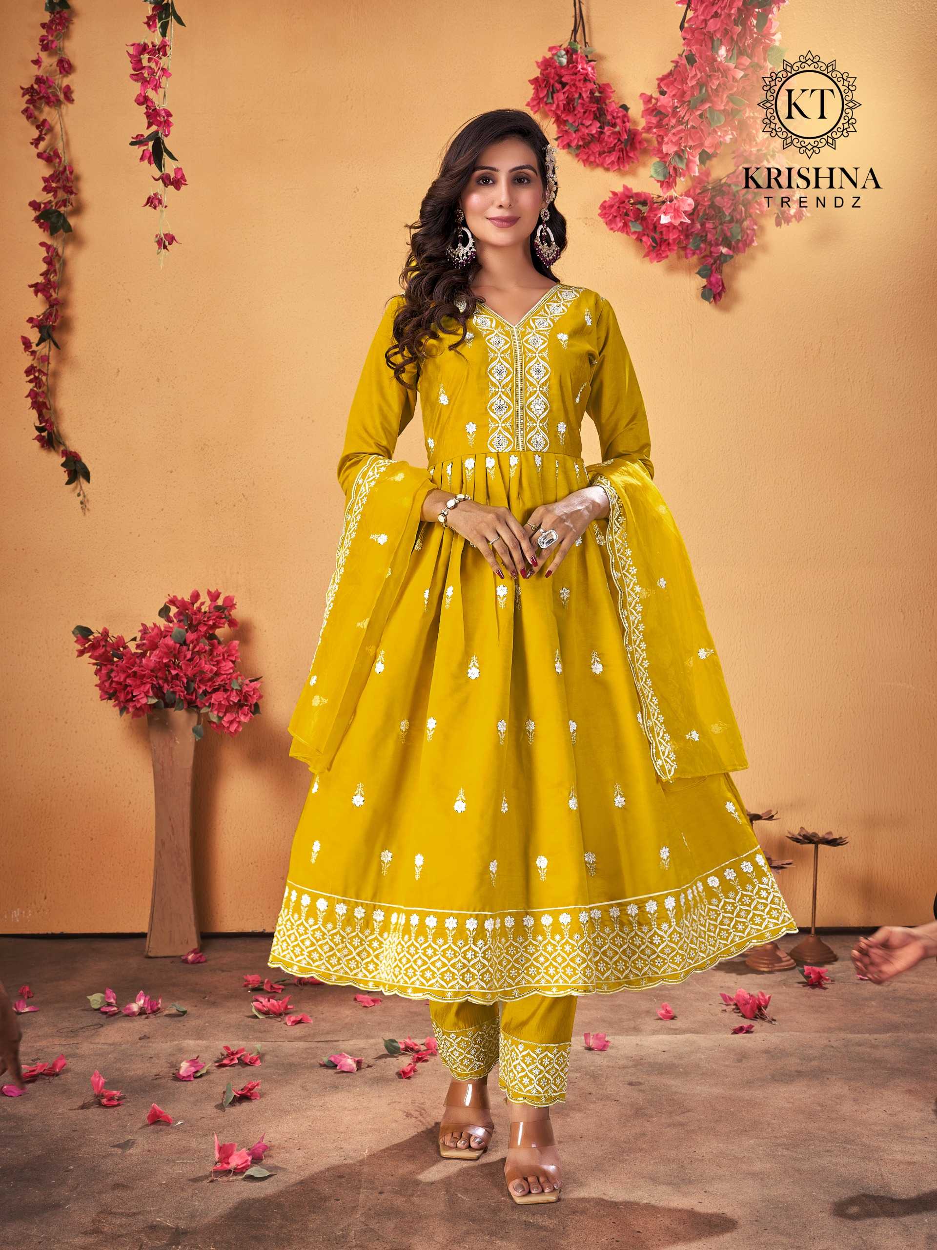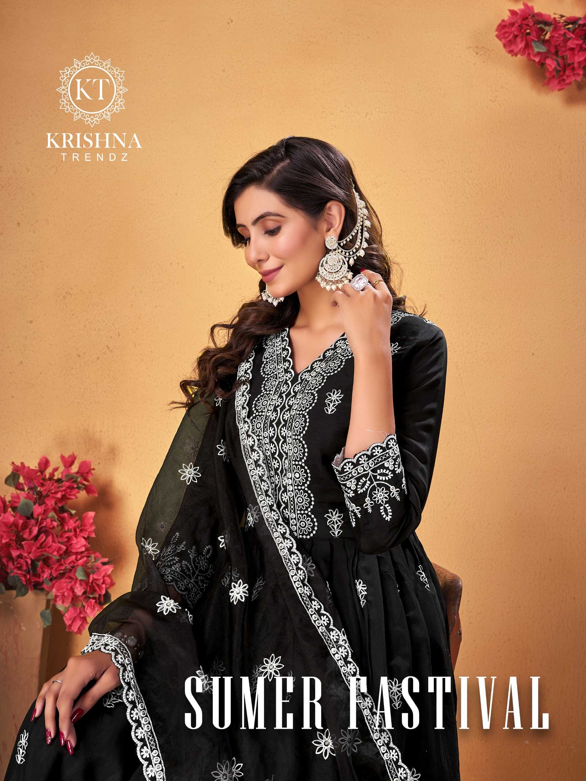 krishna trendz sumer fastival vol 1 roman si̇lk traditional wear fully stitch 3pcs dress