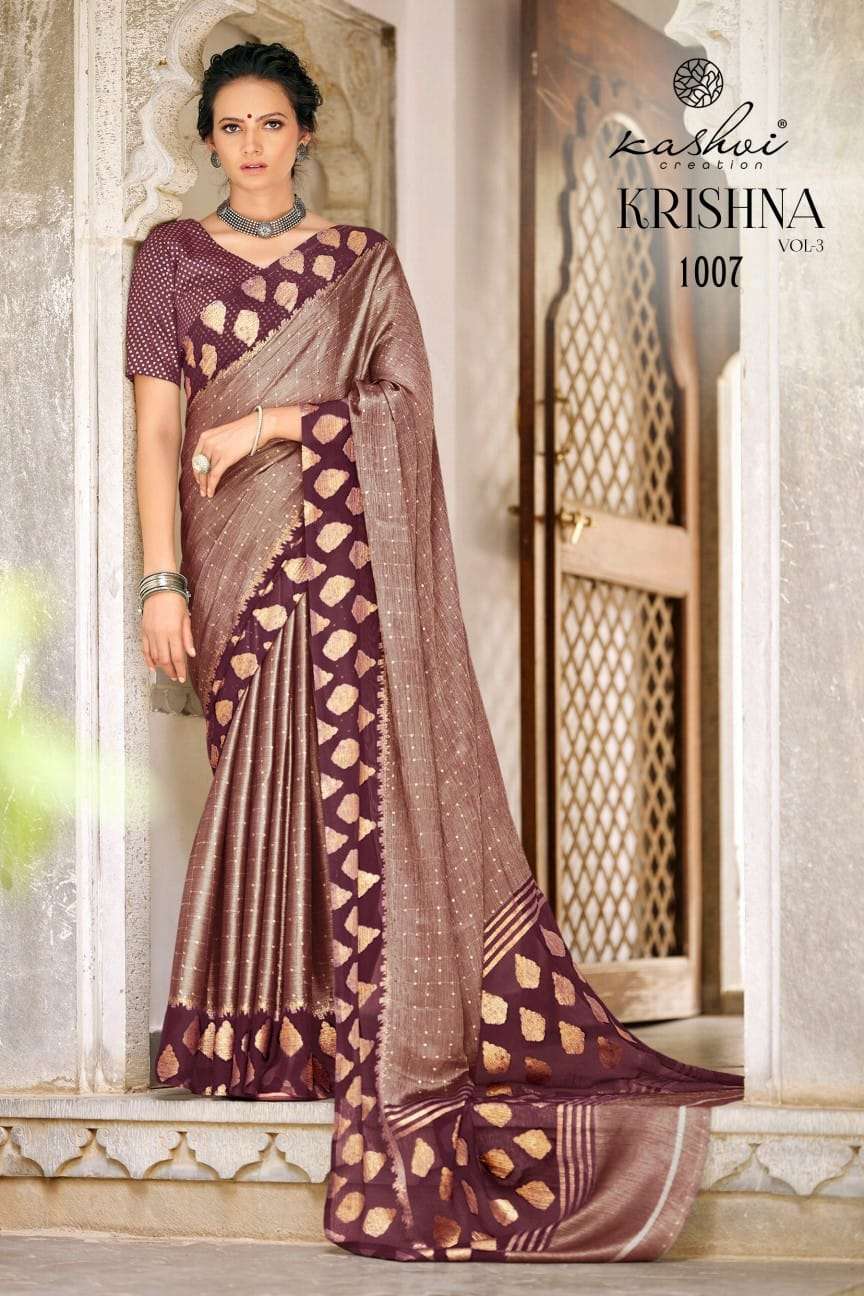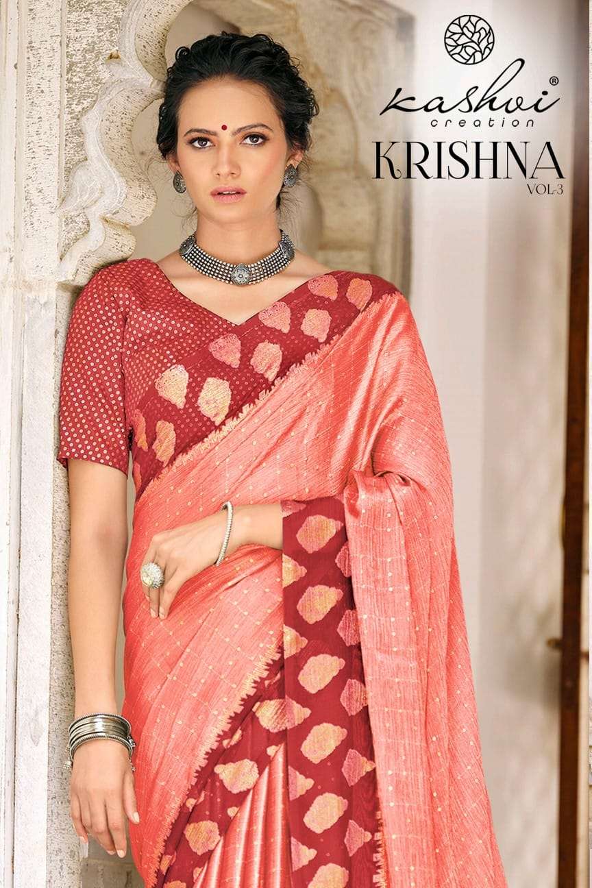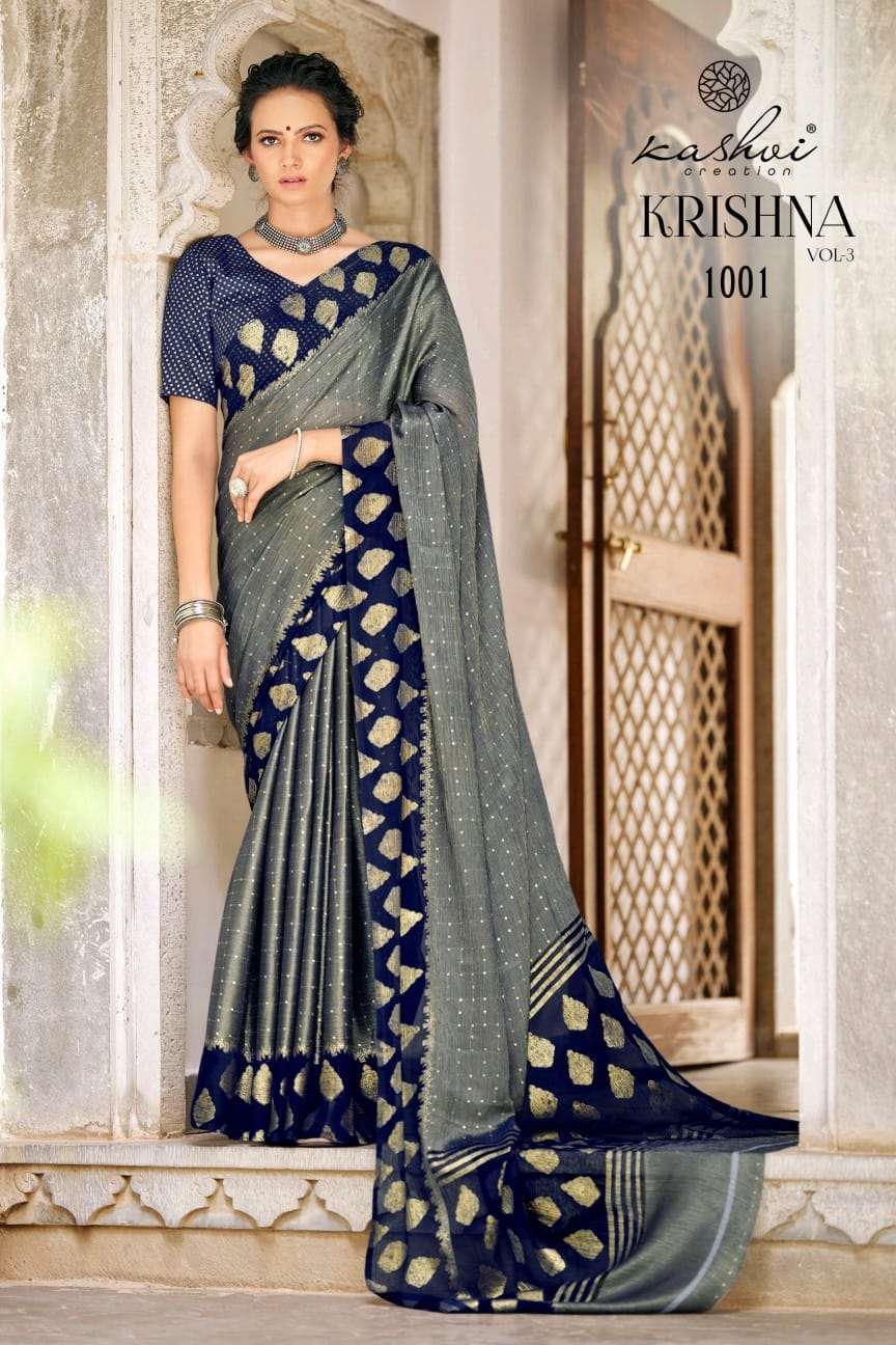 krishna vol 3 by kashvi creation amazing chiffon brasso saree collection