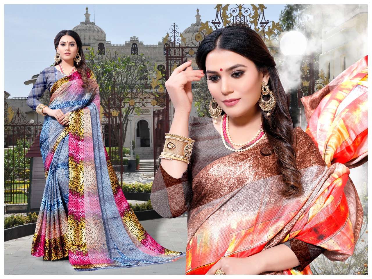 krishnvatika panch tatva vol 2 weightless saree with brasso satin patta
