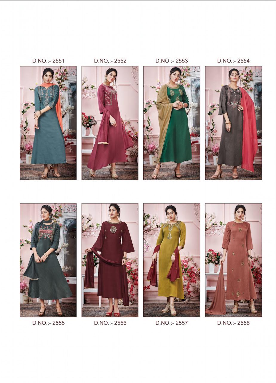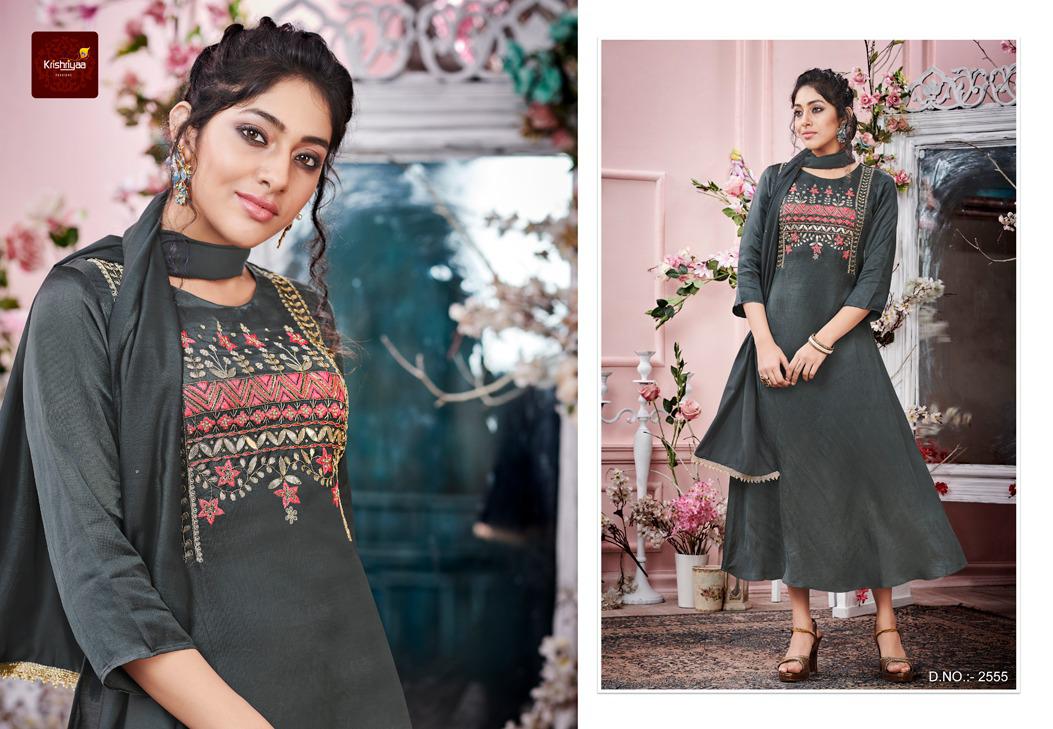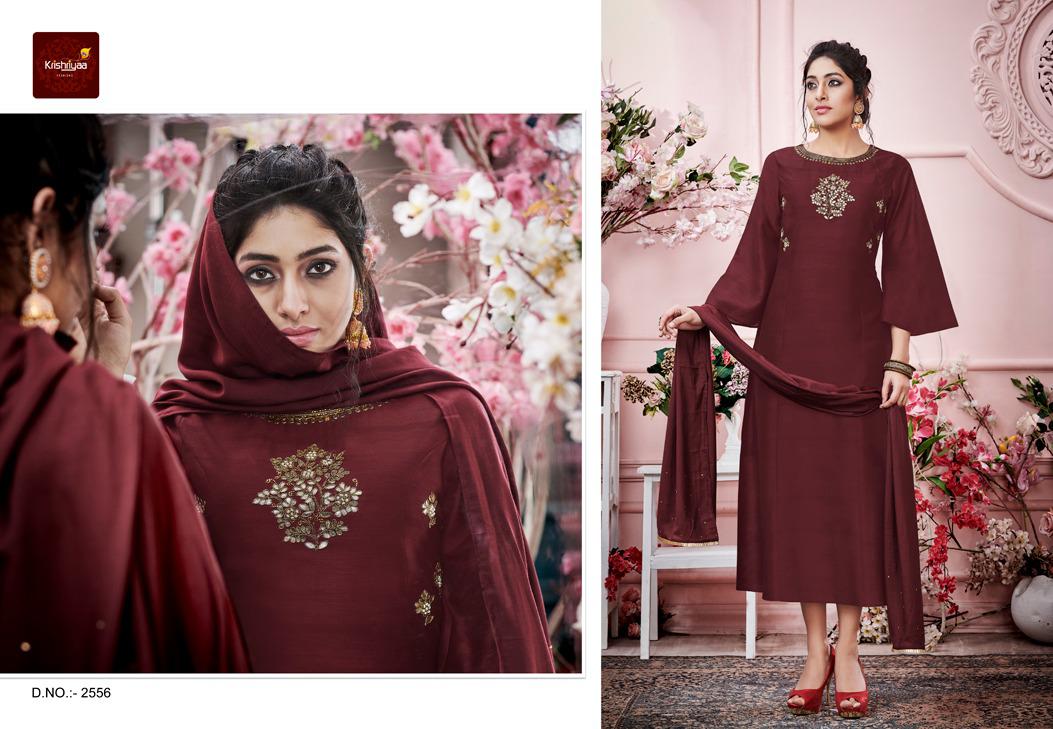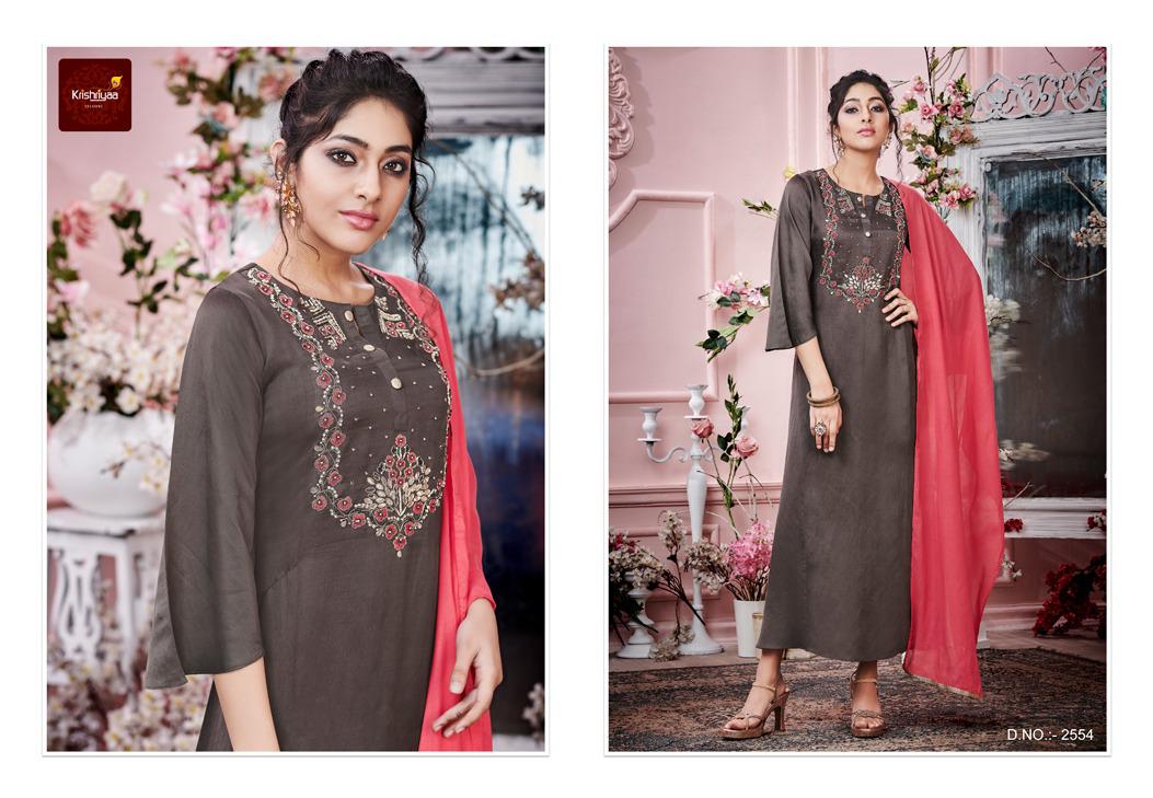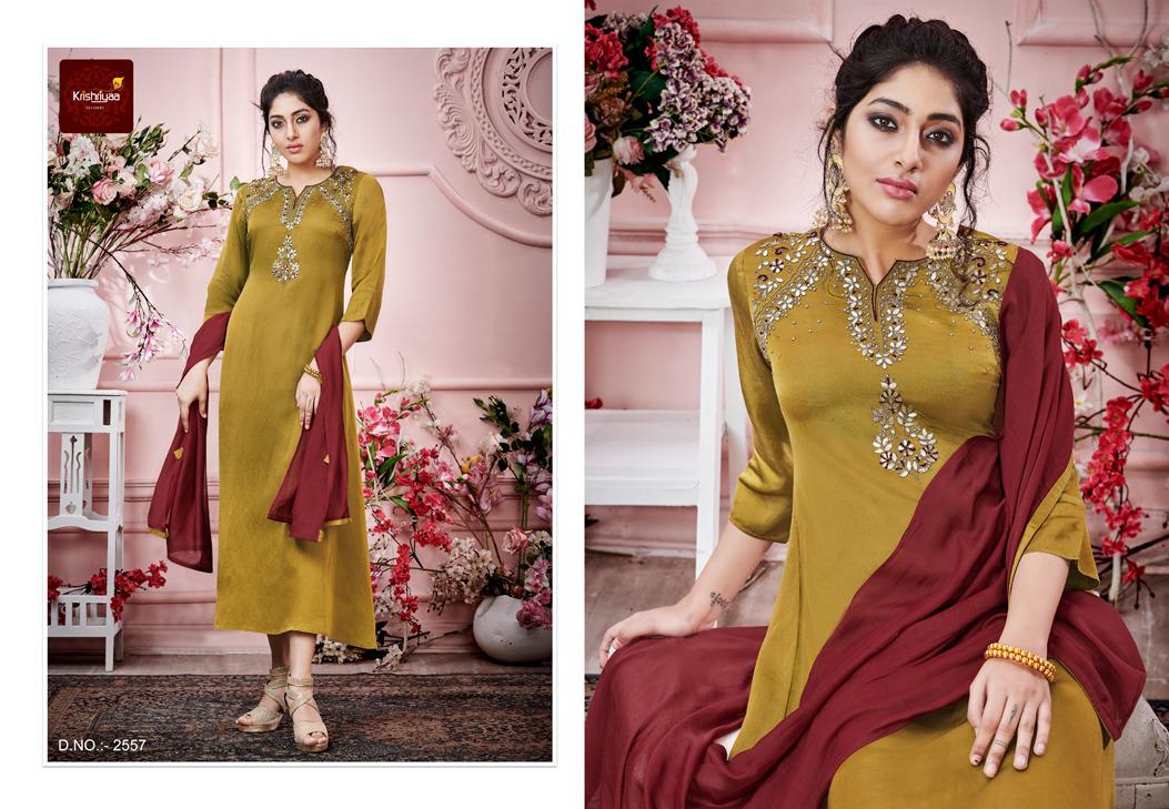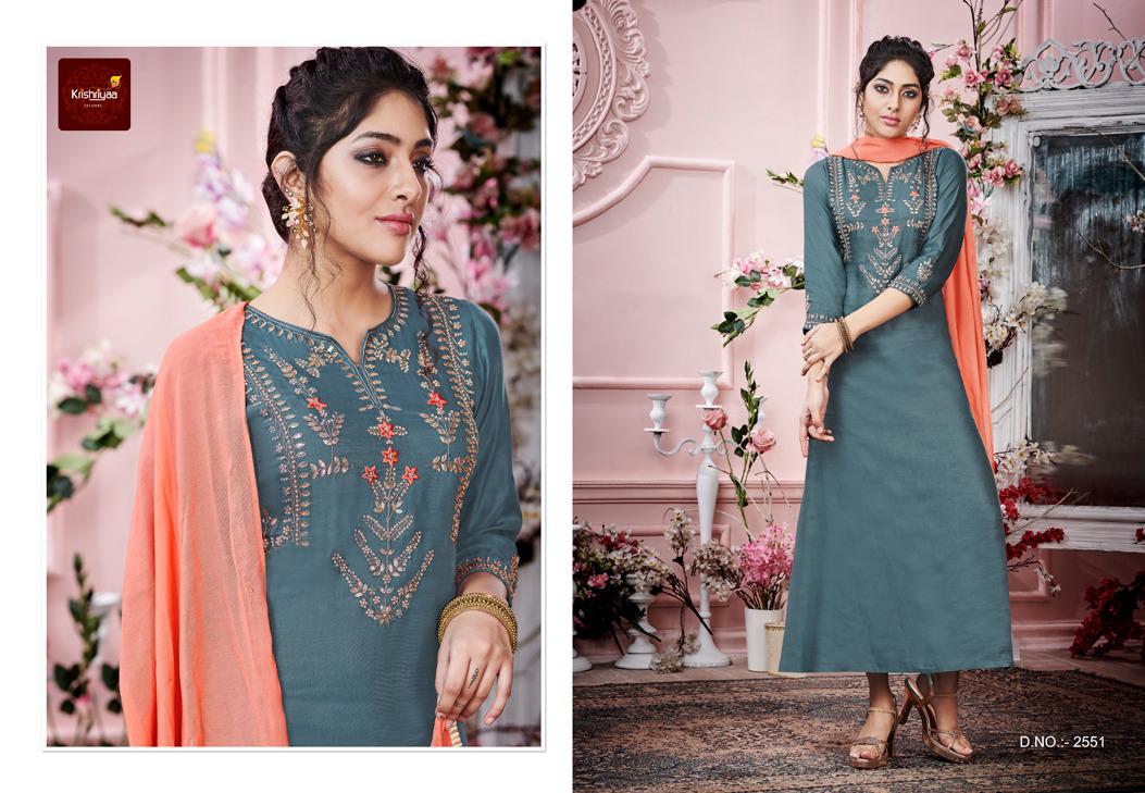 Krishriyaa Krystal Vol 1 Linen Satin Silk Kurti With Dupatta Festival Collection
