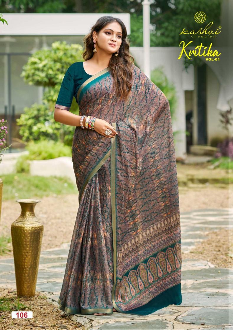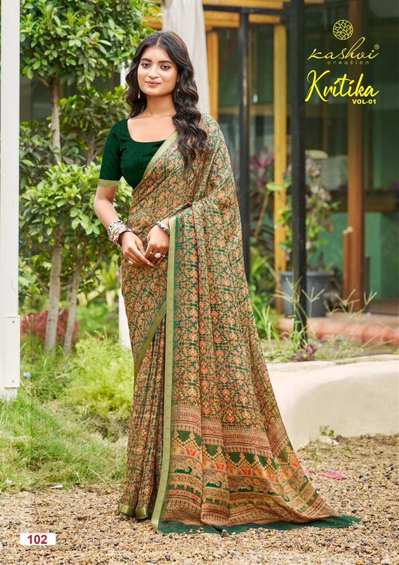 kritika by kashvi creation pretty look dull moss kasab saree online