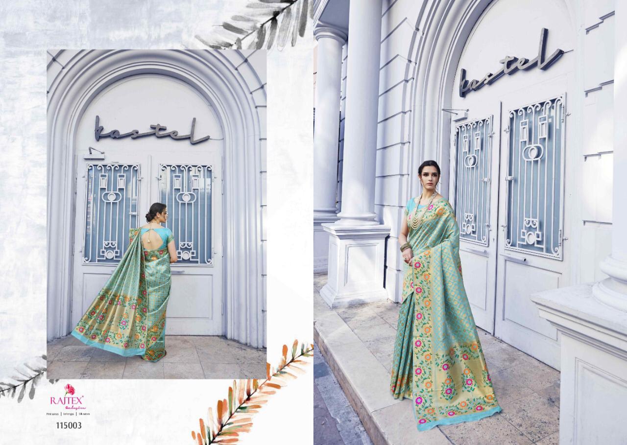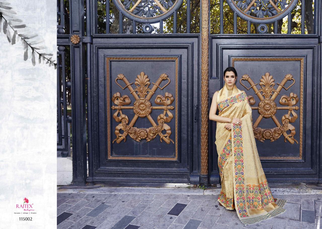 BRAND – RAJ TEX CATALAG NAME – KRYSTILA SILK SERIES – 115001 TO 115006 RATE - 1465 /- PER PCS . FABRIC-HANDLOOM WEAVING SAREES GST - 5% EXTRA |