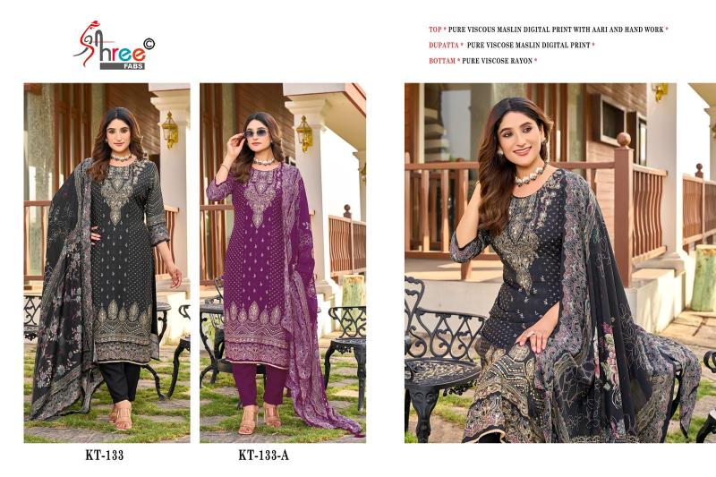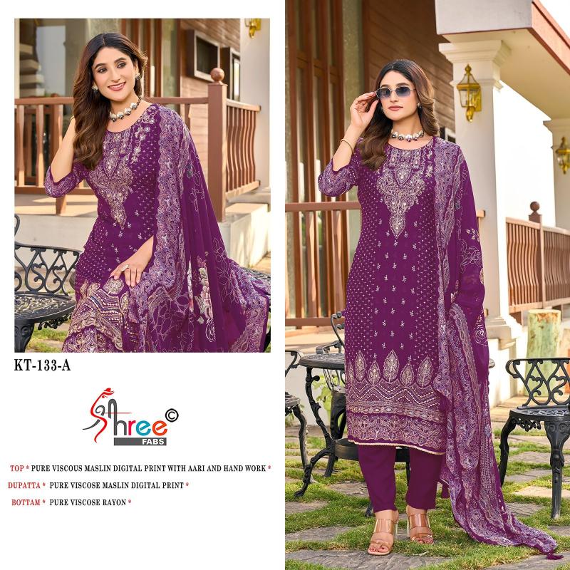 kt 133 by shree fabs muslin attractive look pakistani 3pcs dress material