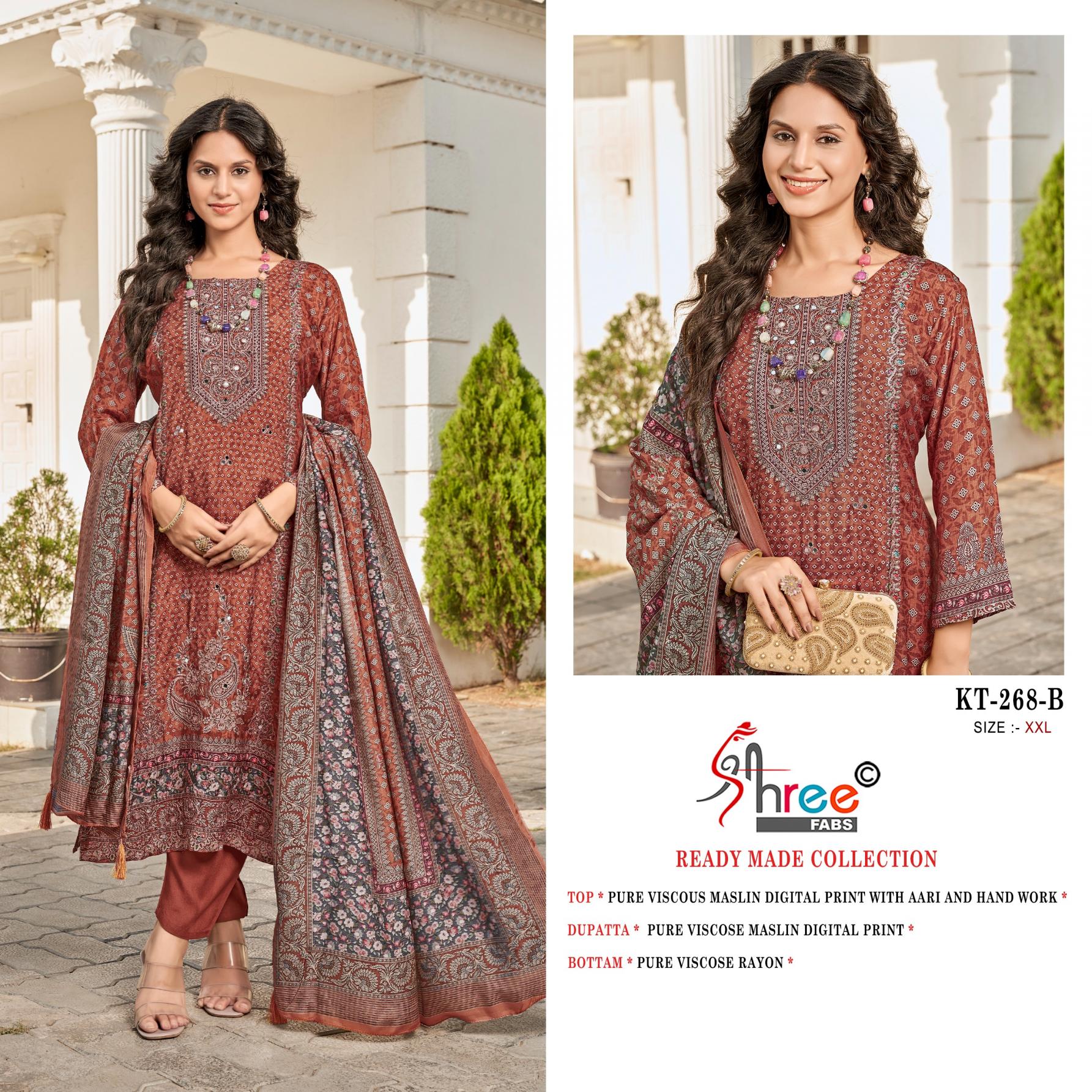 kt 268 by shree fabs viscose muslin fully stitch pakistani 3pcs dress