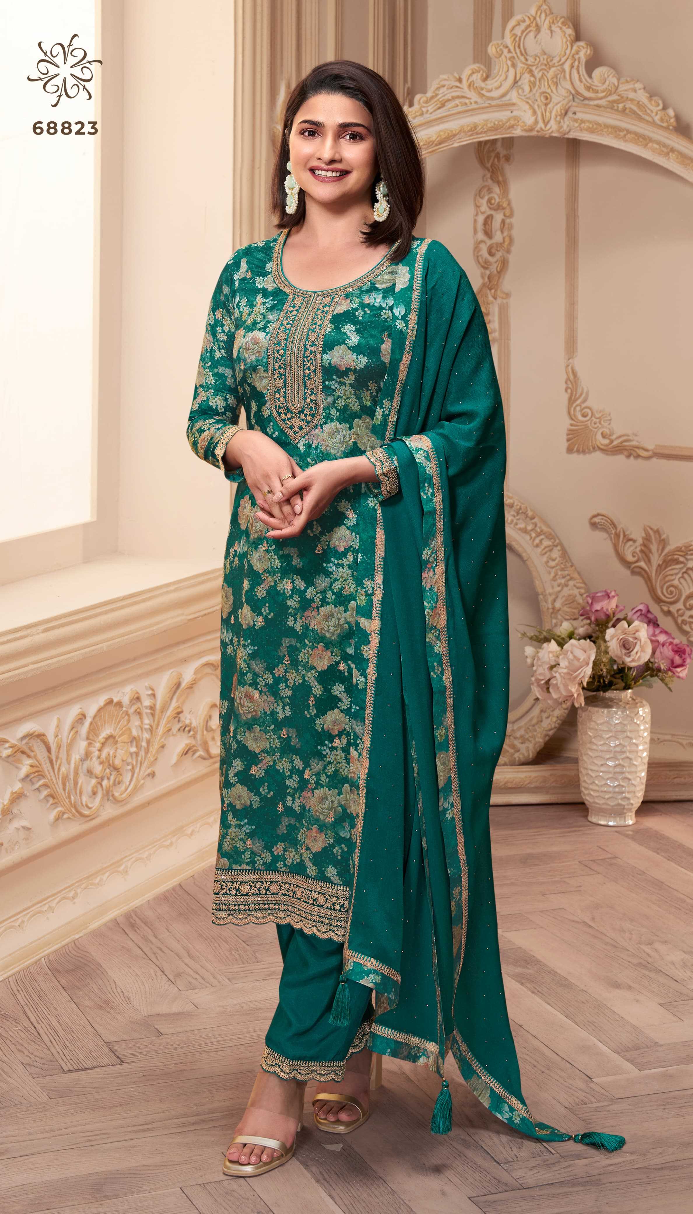 kuleesh pahal by vinay party wear digital printed chinon dress material