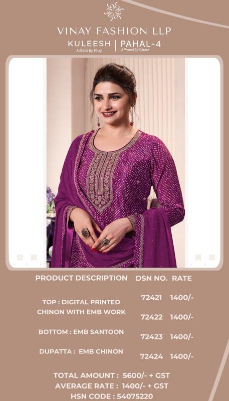 kuleesh vinay pahal vol 4 chinon readymade fashionable dress material