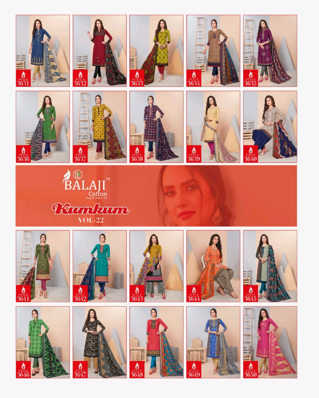 * BALAJI COTTON * * New launch * * Kumkum vol 22* * Cotton dupatta â * * 100% pure cotton * * 20 design * Rate ~ 330/-â¹ |