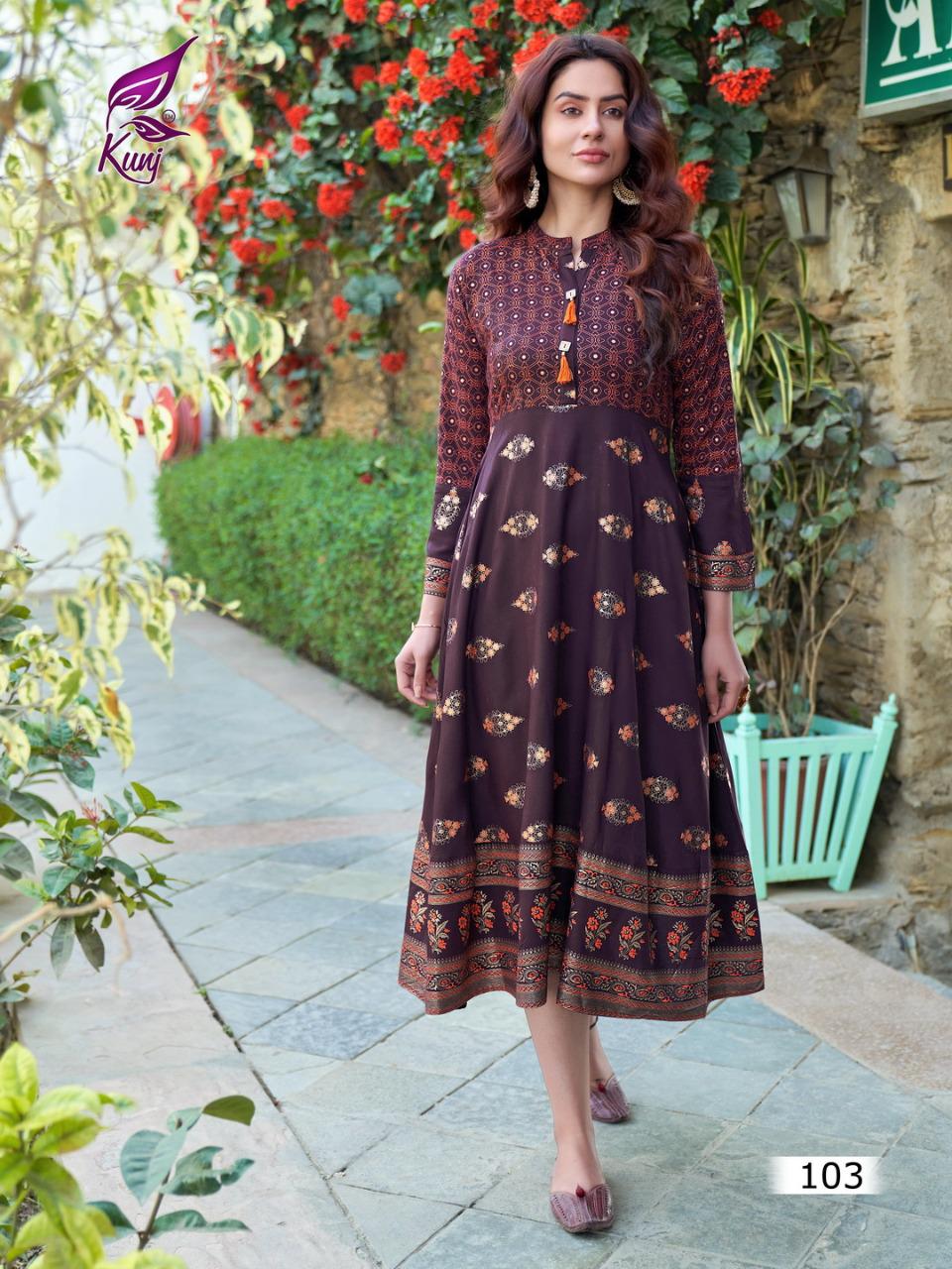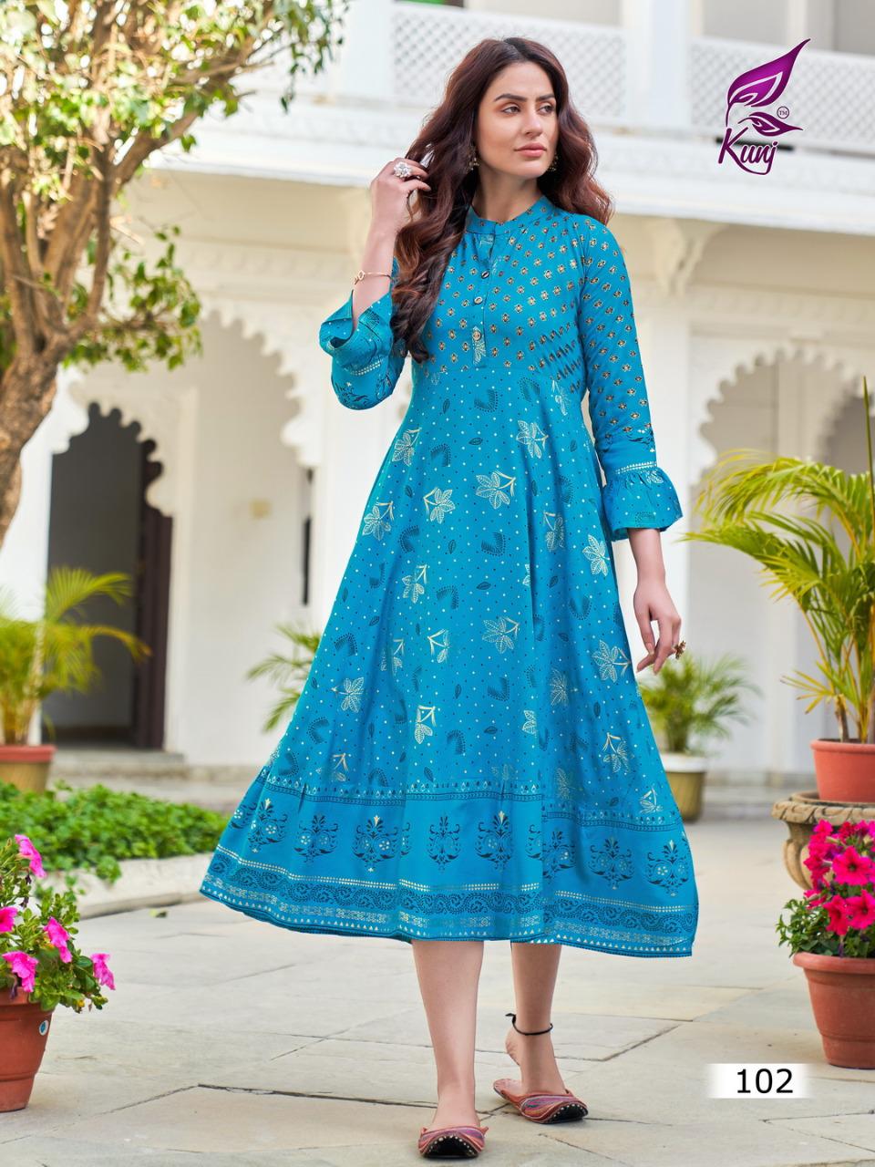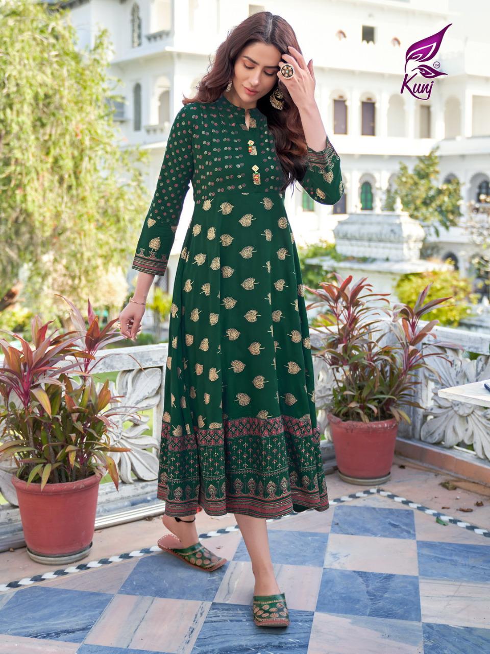 Kunj Flairy Tales Vol 1 Heavy Rayon Latest Long Kurti Seller In Surat