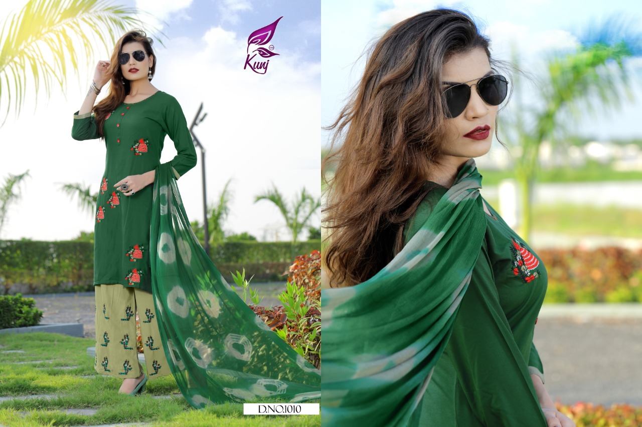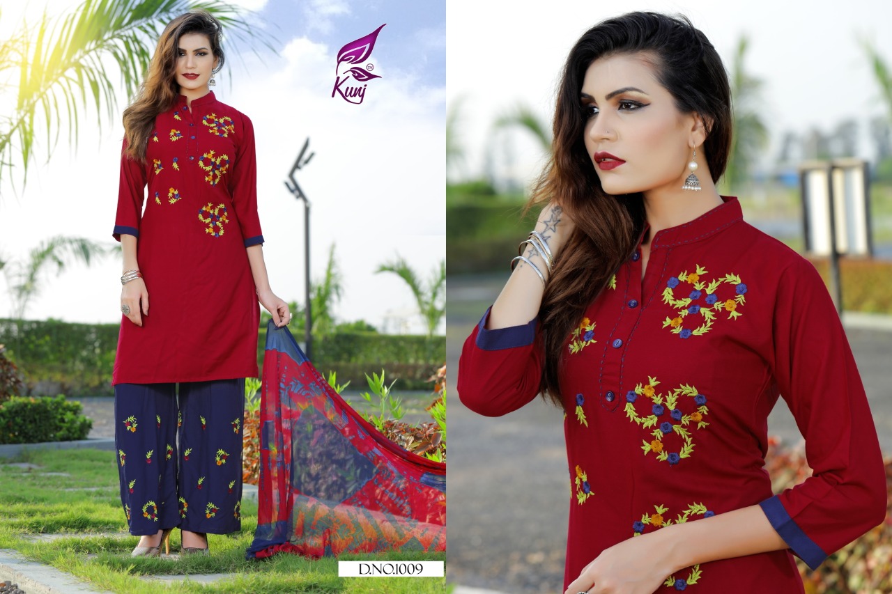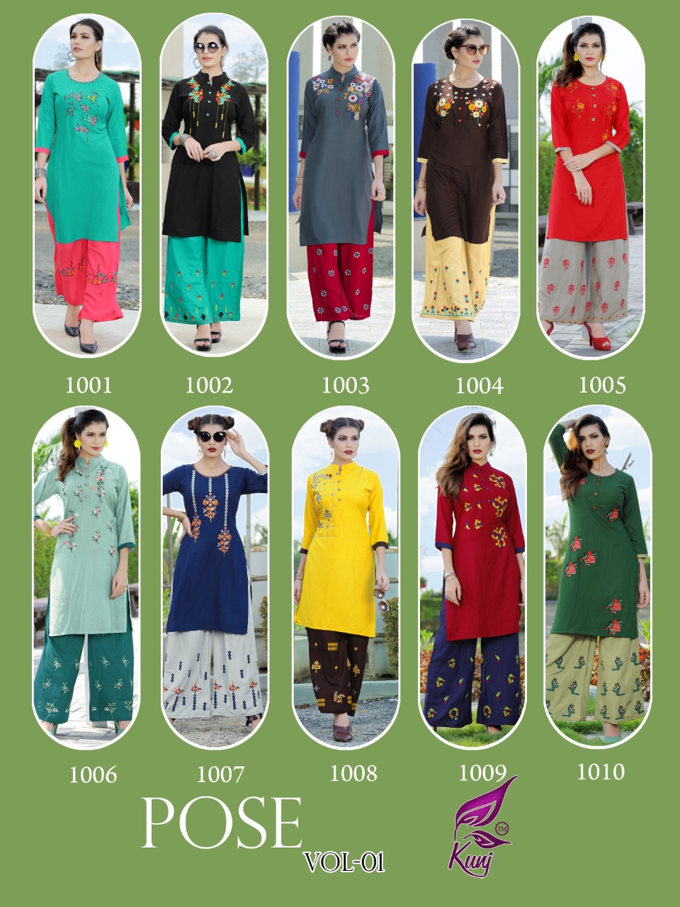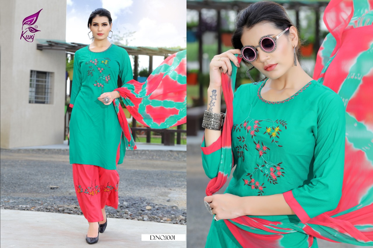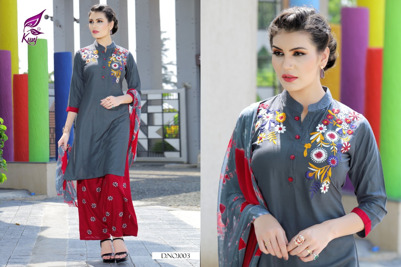 Kunj Present Pose Vol 1 Rayon Exclusive 1001-1010 Series Plazzo Style Suit