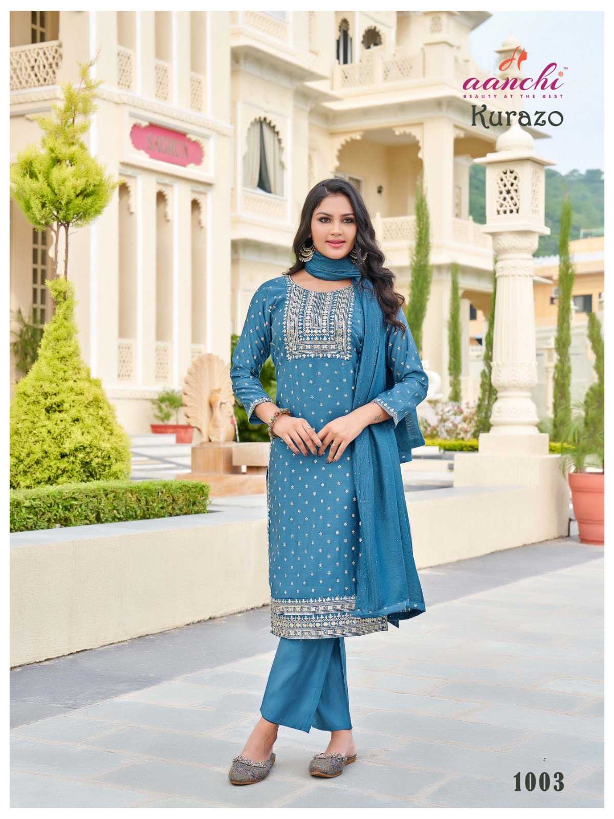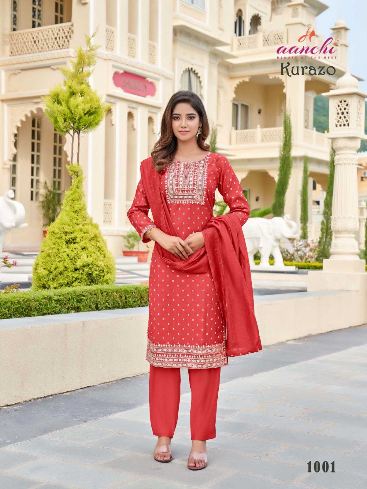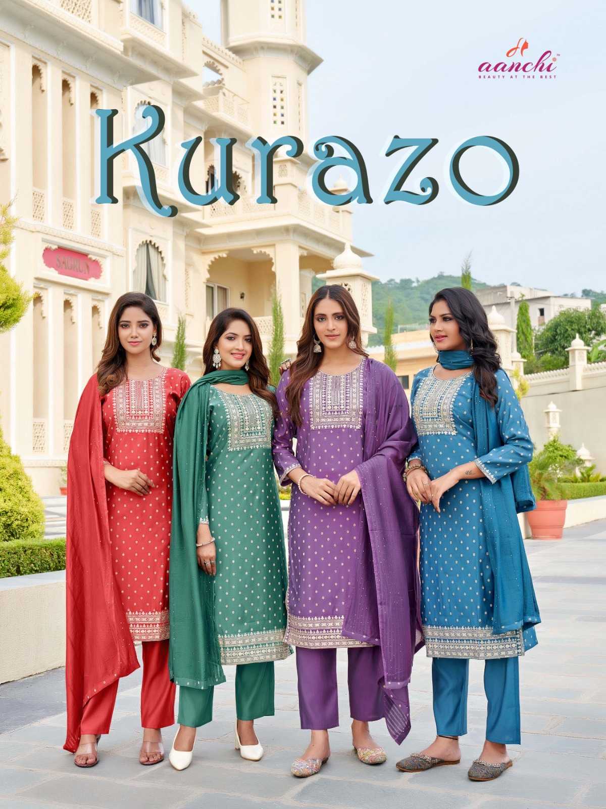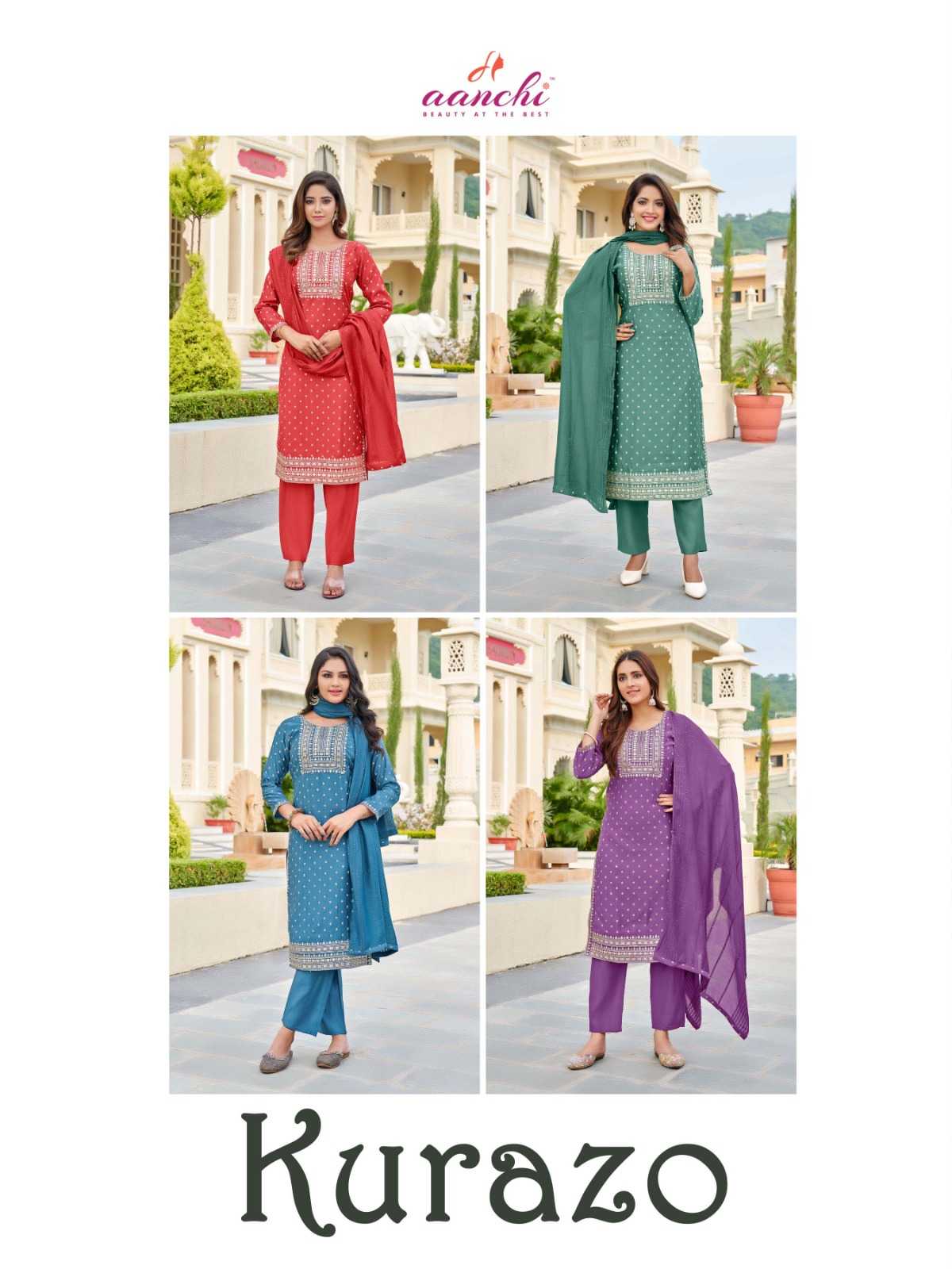 🔅Aanchi Kurtis🔅 Catalogue Name:KURAZO ⭐Details: 👗Fabrics - 👚Pattern- 🎗Size - M TO XXL ☣Designs- 4 Pcs 💵 Rate- 1005/-