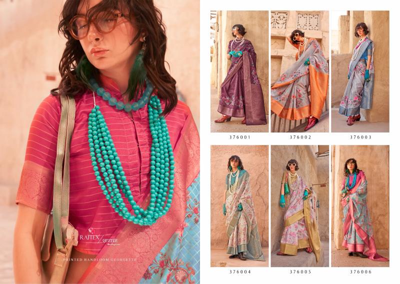 BRAND : RAJTEX CATALOGUE NAME:- KURO FABRIC DETAILS:-︎ PURE HANDLOOM GEORGETTE WITH WEAVING BORDER & DIGITAL PRINT BLOUSE : HANDLOOM GEORGETTE RATE:- 1360/- OCCATION : CASUAL WEAR, UNIFORM WEAR |