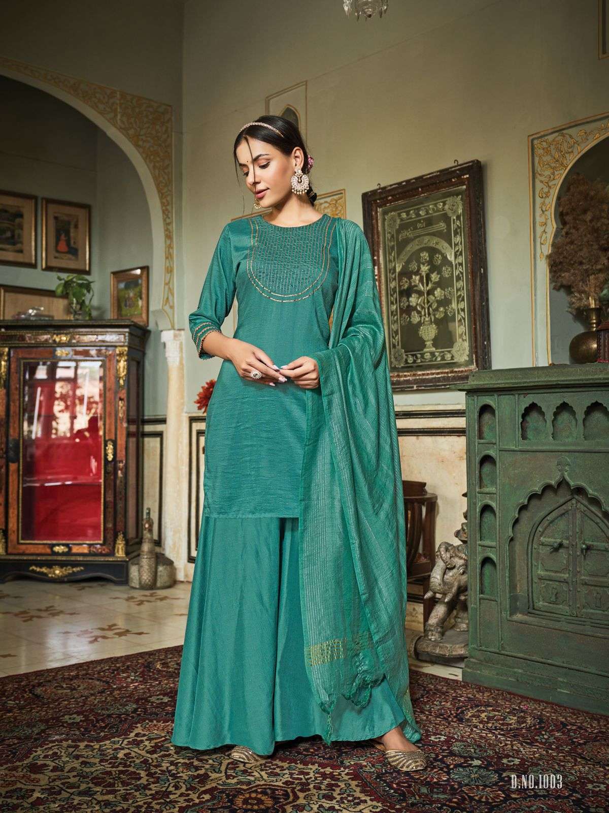 *Fabric :- Chinnon Silk Work:- Handwork...!! 5pcs catalogue Size- M, L, Xl, 2xl Designs - 5 Length- Top-34” Duppatta- Chanderi jari work Duppatta Rate :- 925/-+ 5% Gst will be added on Bill Amt. |