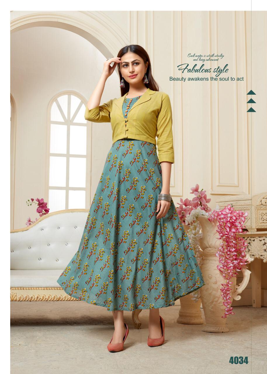 Presents Catalogue name- PRECIOUS Fabric :- Cotton 4pcs catalogue Size- M,L, XL,XXL Designs - 4 Length- Top- 48 with jacket Rate :- 725/- GST +5% Add on Bill Amt |