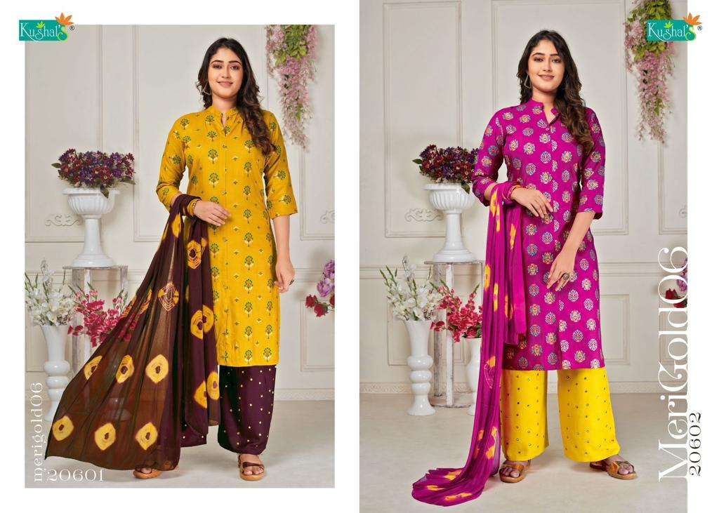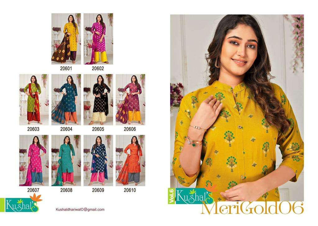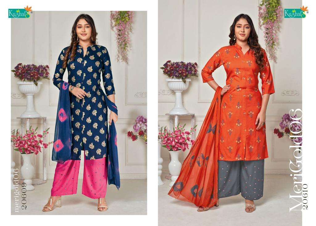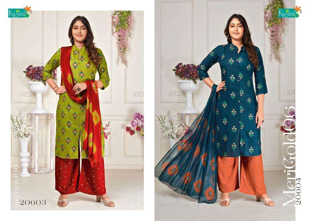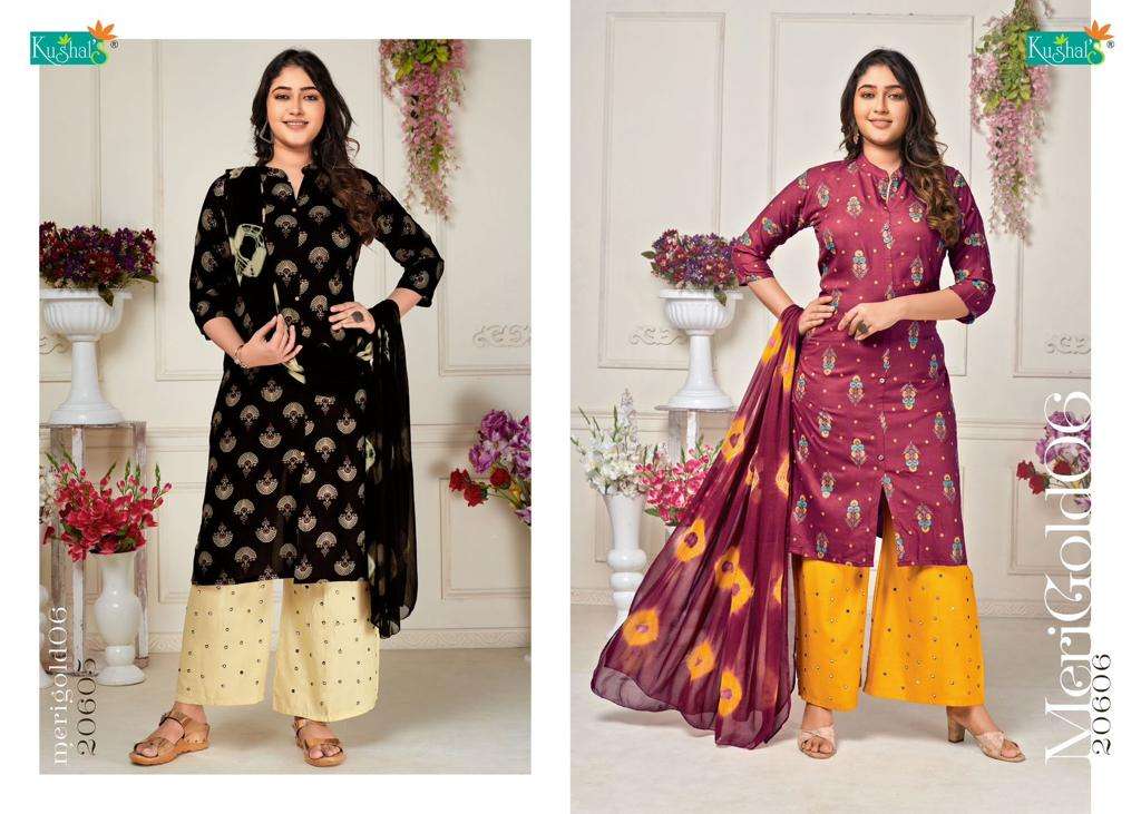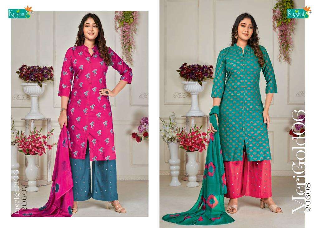 kushals meri gold vol 6 rayon readymade top with plazzo and dupatta set