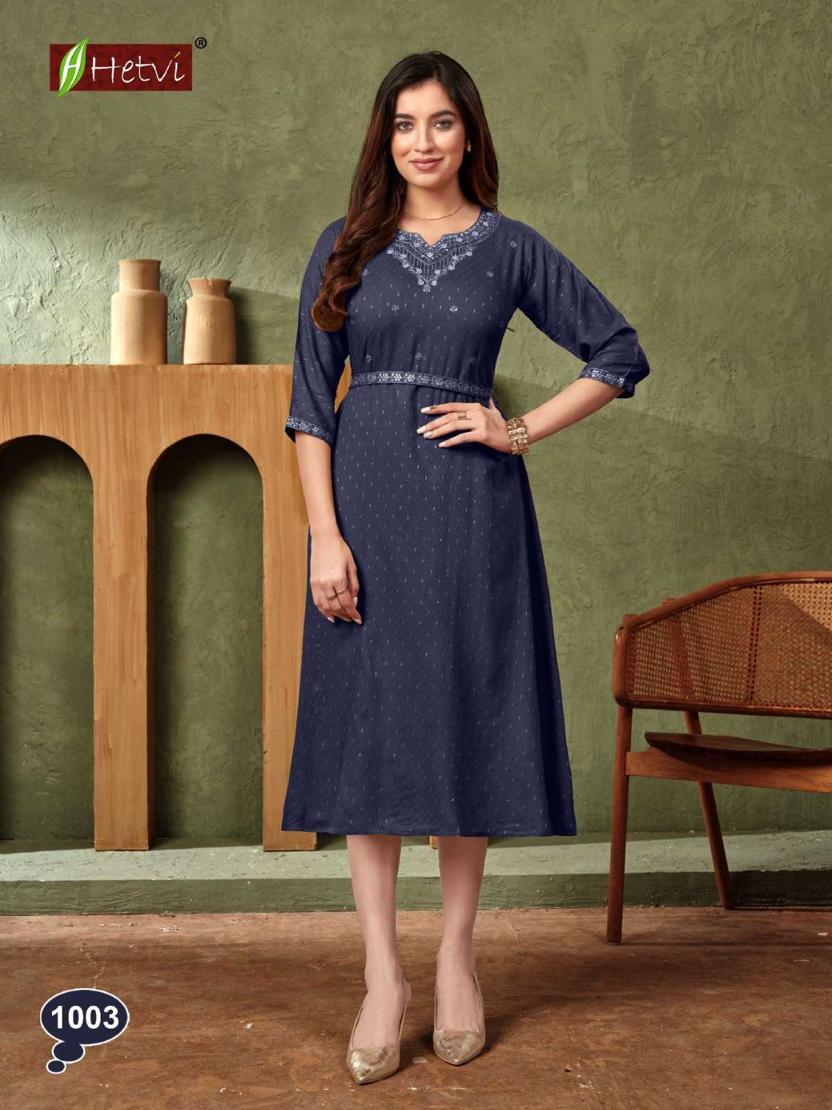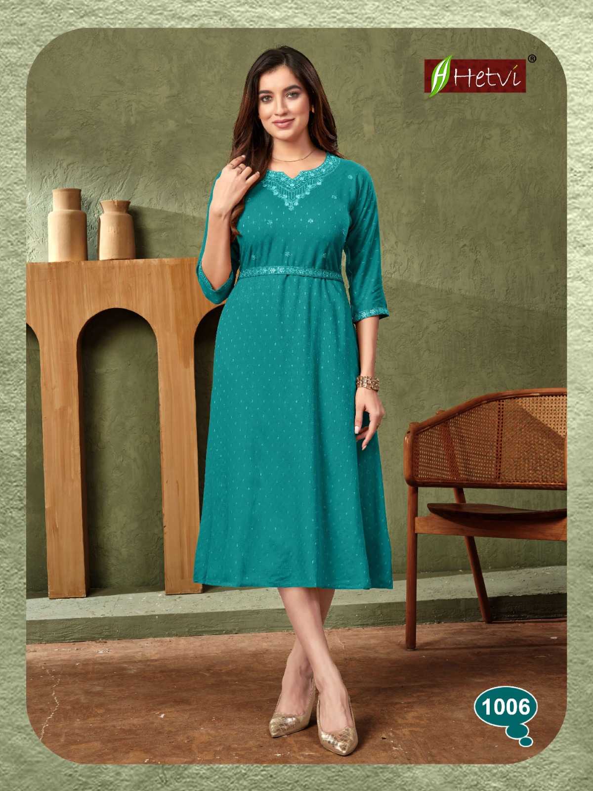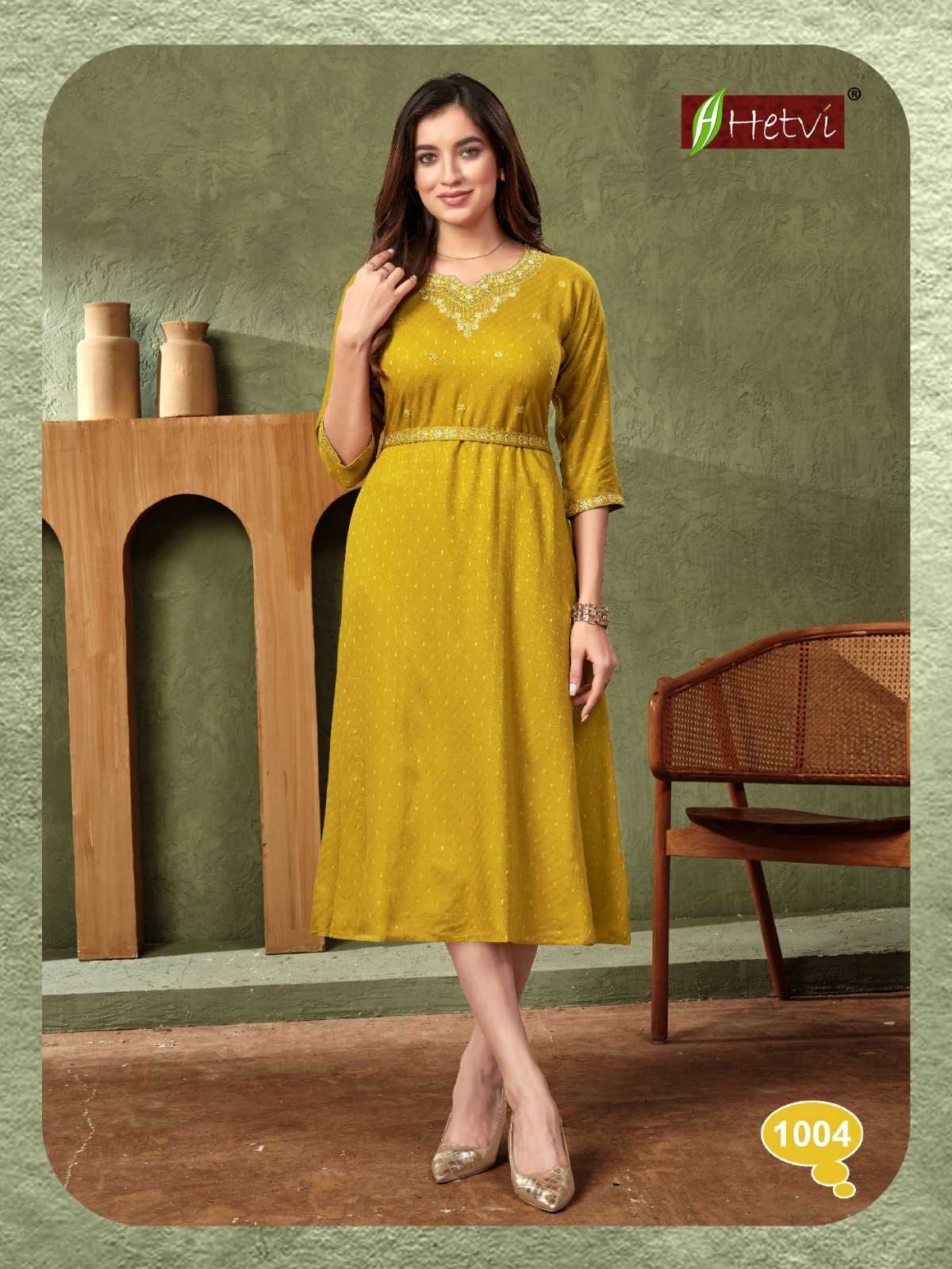 kyara by hetvi stylish bombay viving fully stitch umbrella frock style kurti