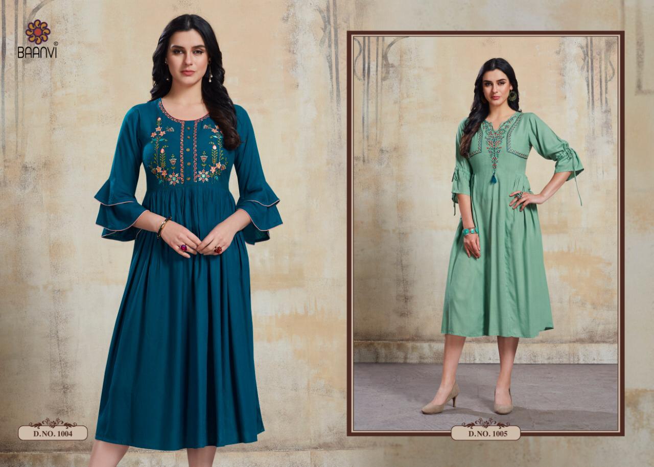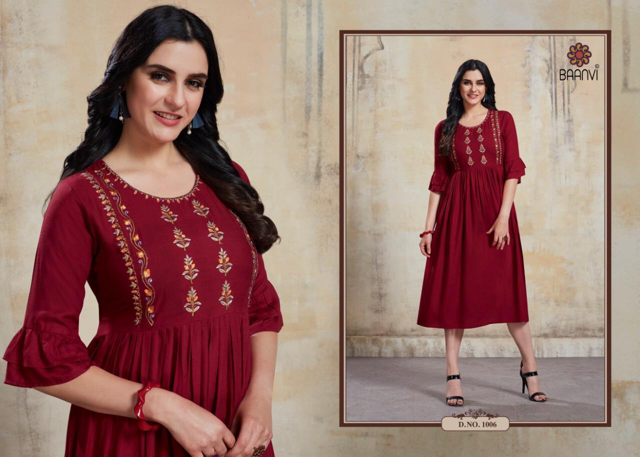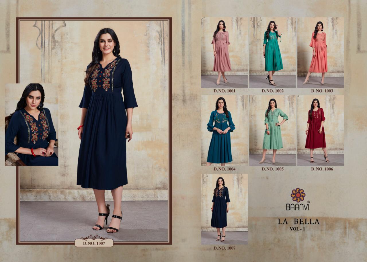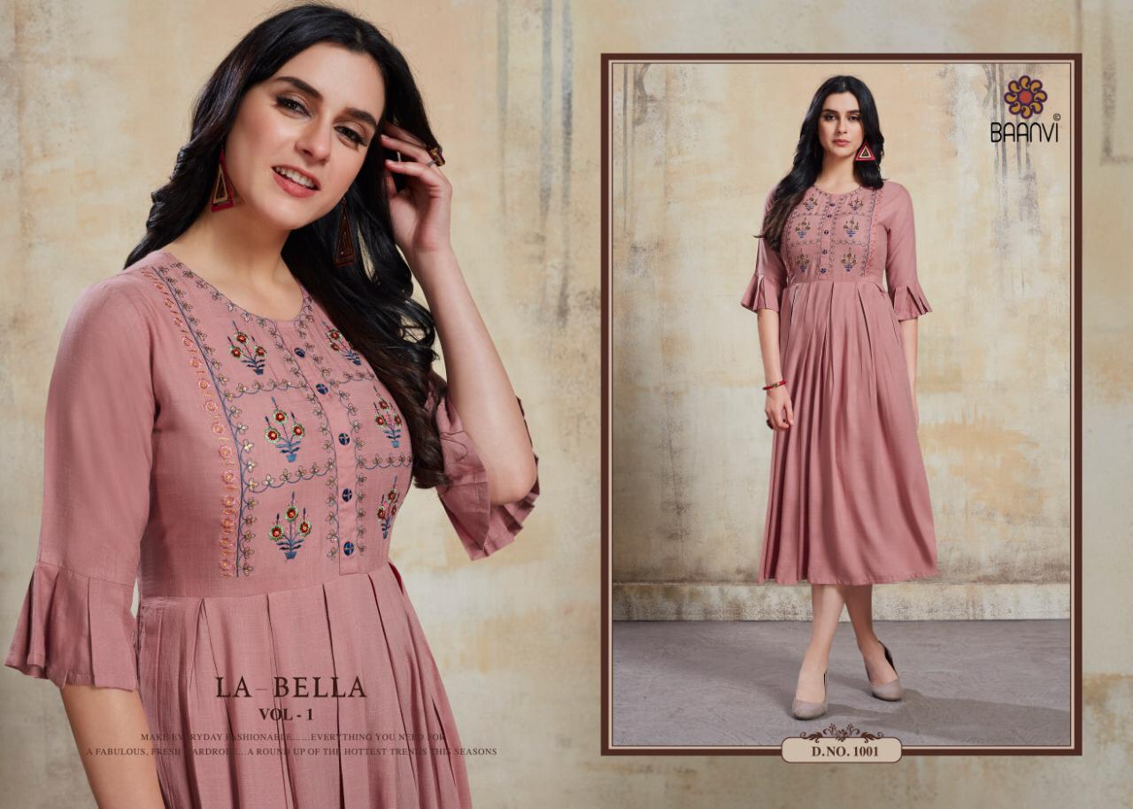 La Bella By Baanvi Rayon Slub Embroidery Long Kurtis