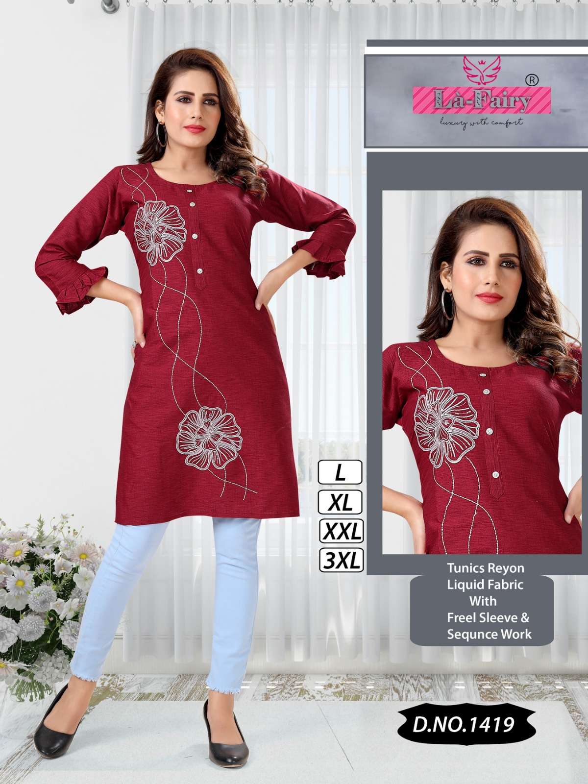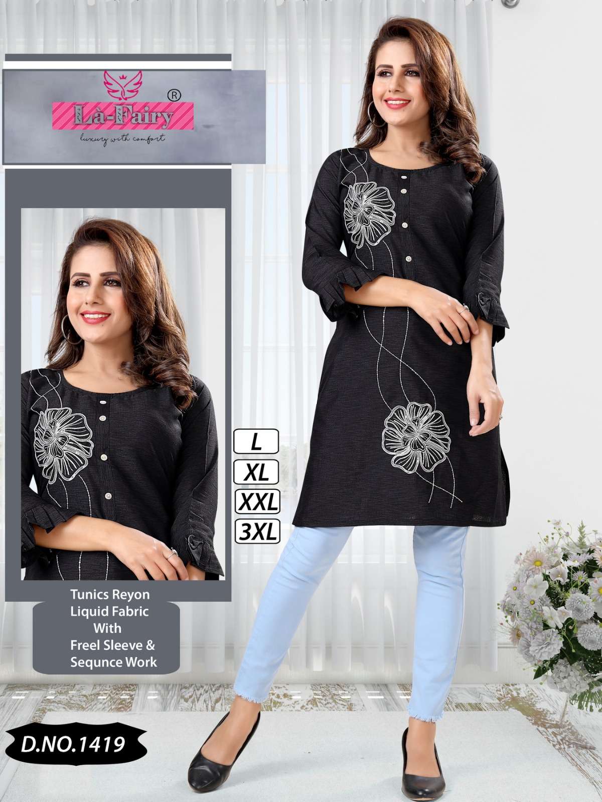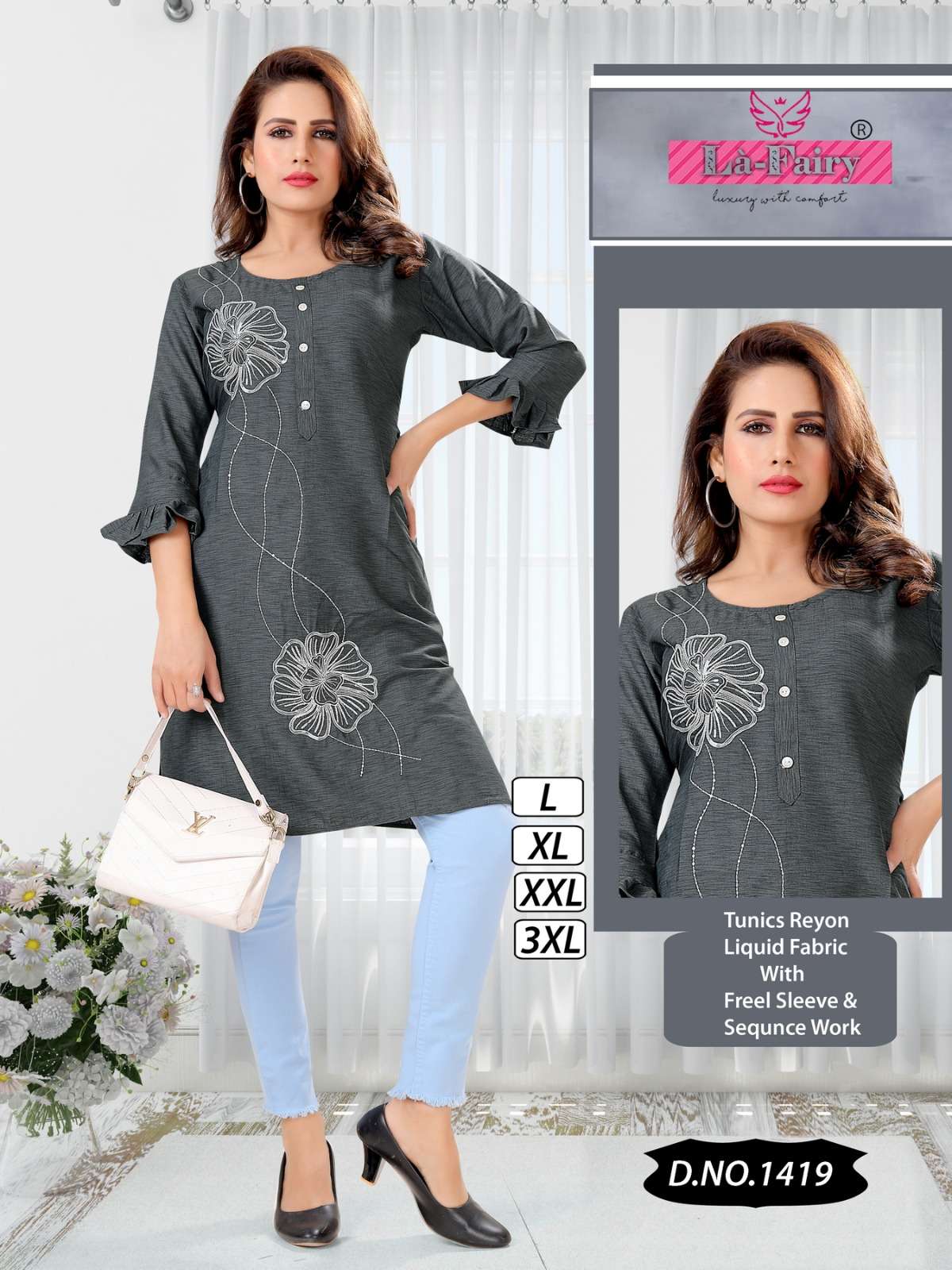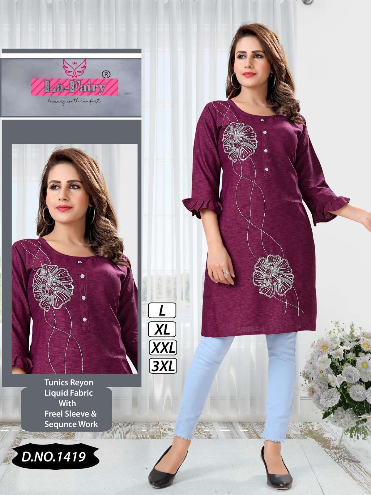 la fairy 1419 readymade fancy short kurti with frill sleeve combo set