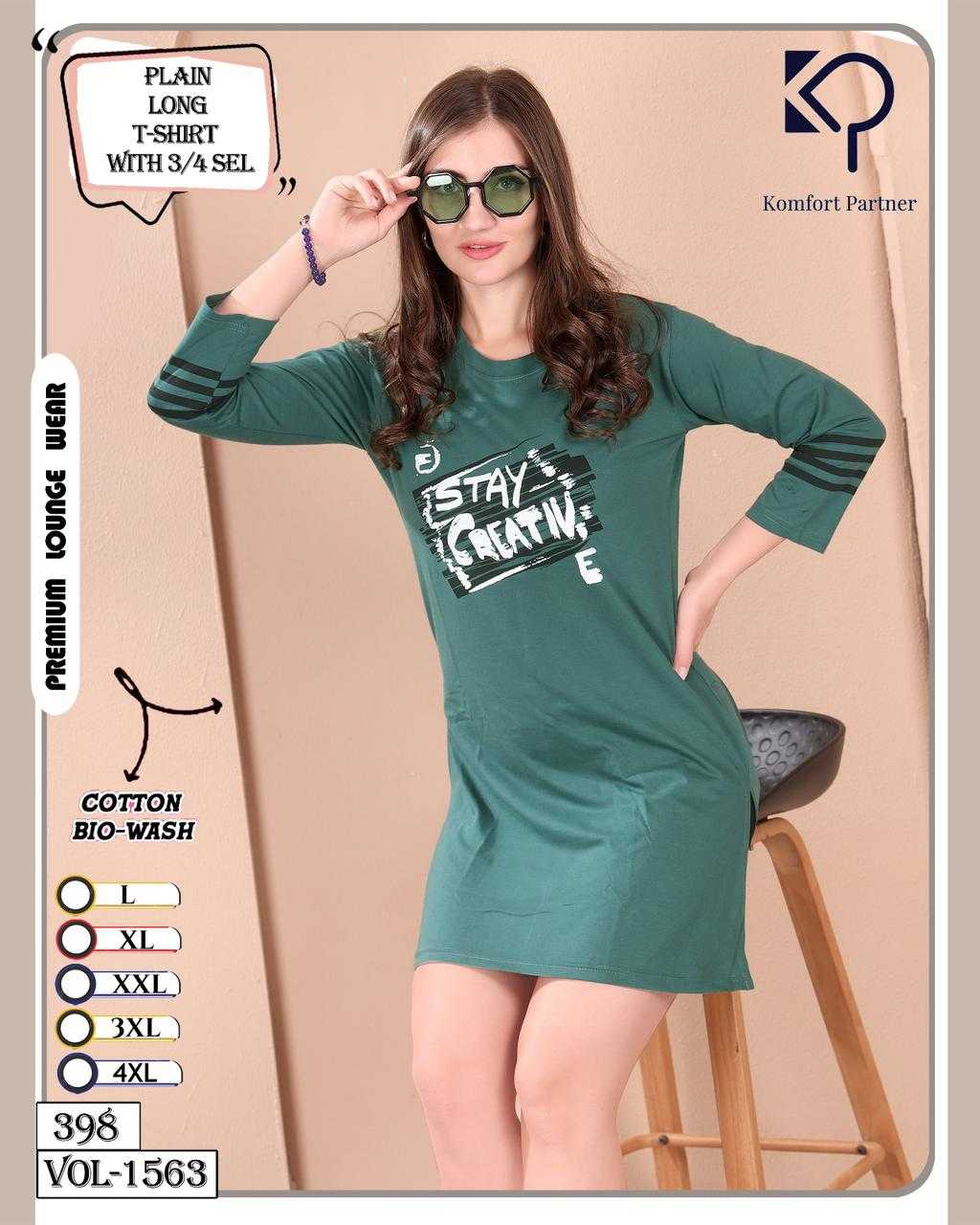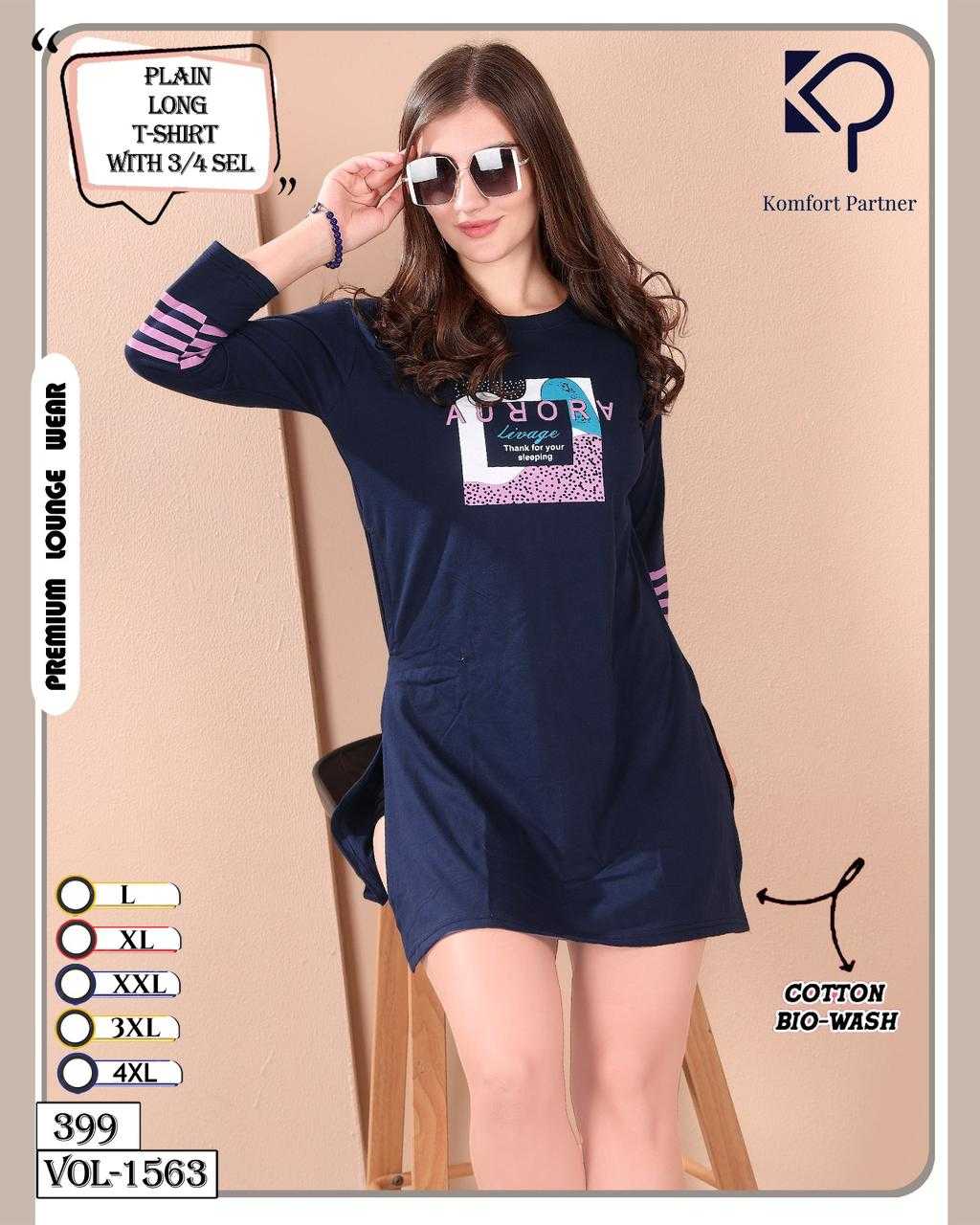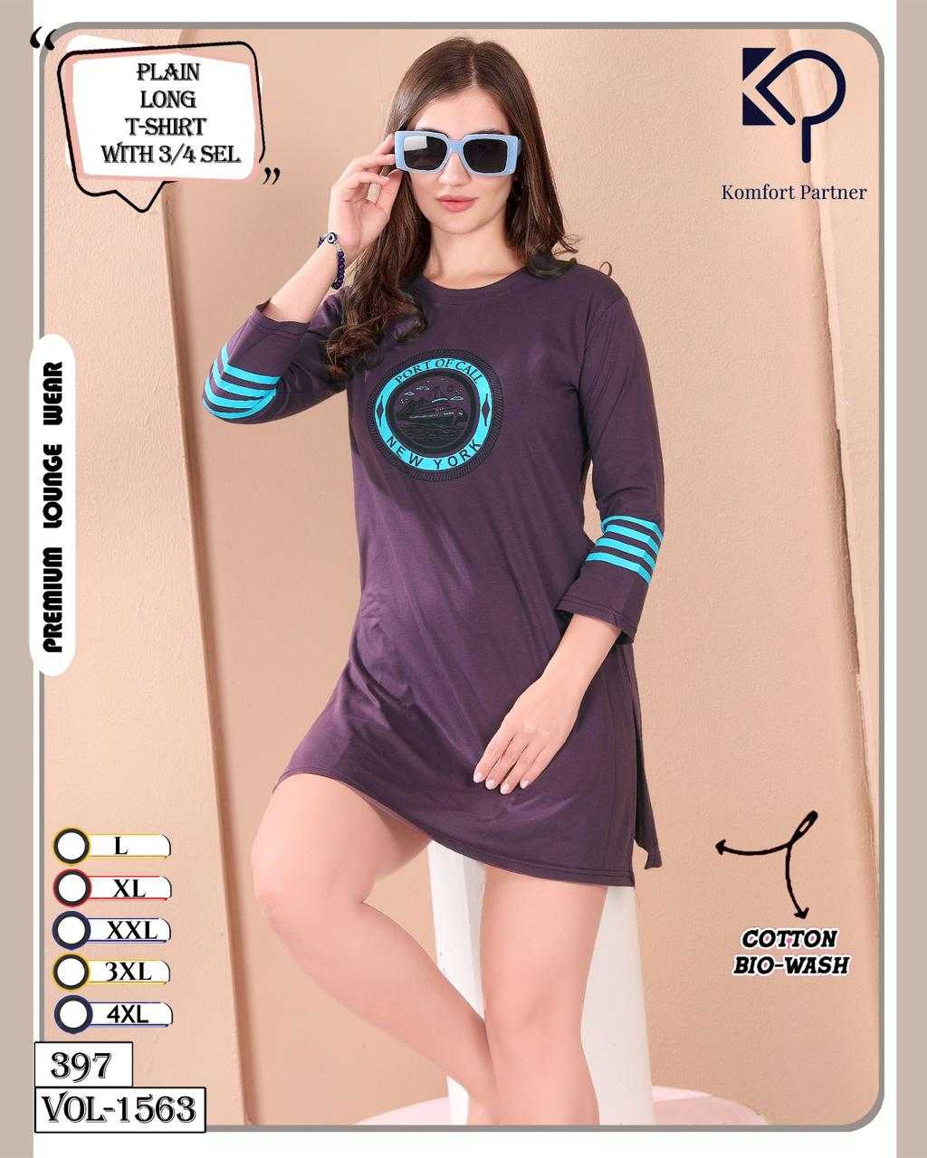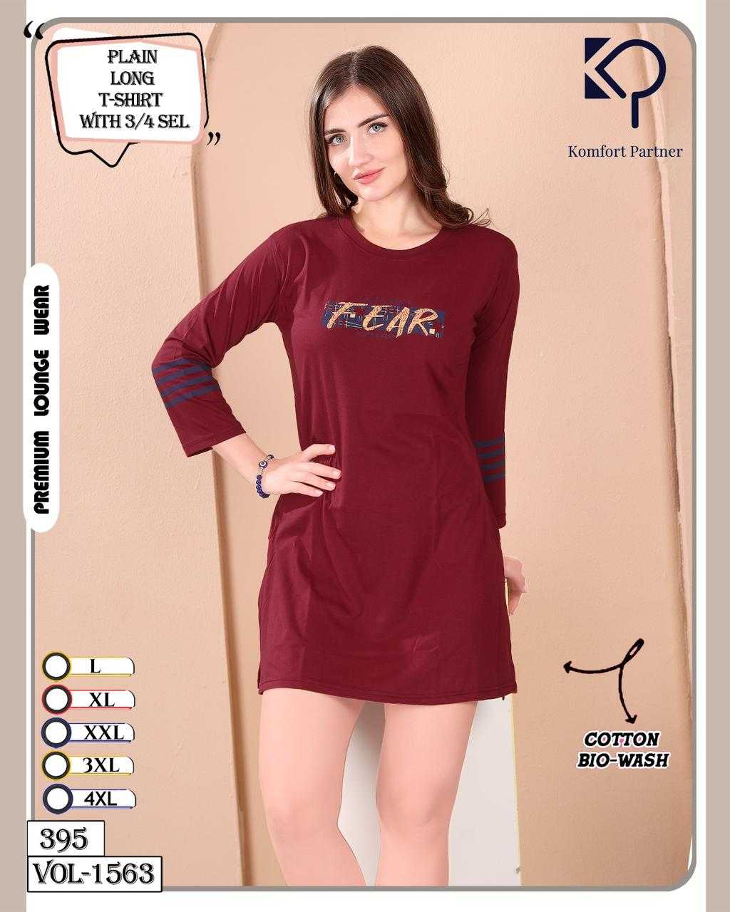 La Fairy Vol 1563 Plain Long T-Shirt with 3/4 Sel and pocket Cotton L-310 All size compulsory |