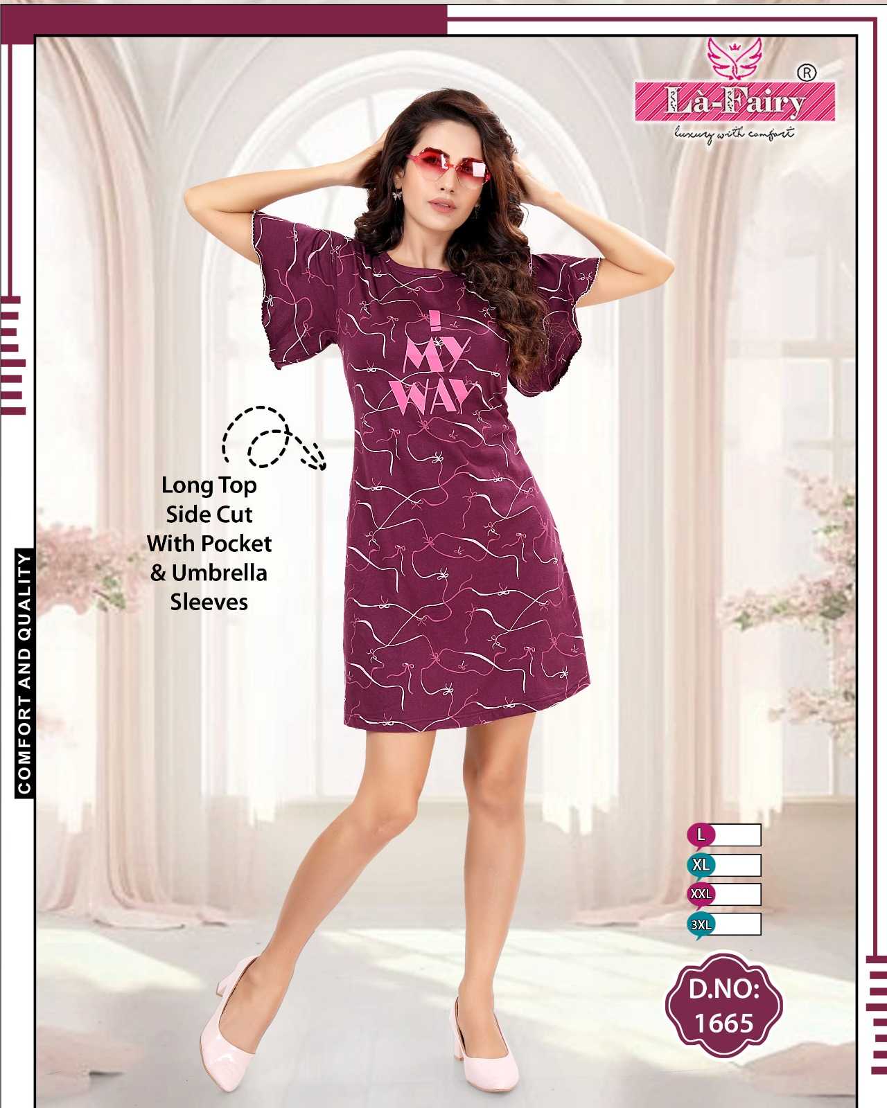 la fairy 1665 shinker hosiery print girls readymade long top with pocket