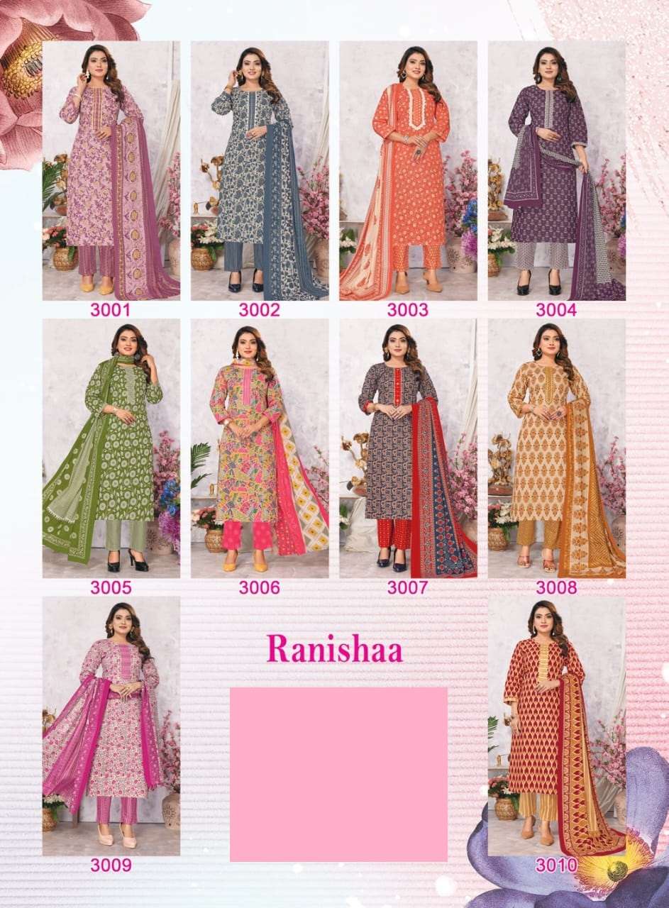 Dear Customers, LAUNCHING OF Jay Hanuman Processors new catalog Ranishaa VOL-03 (Ready Made suits) 3pcs Top - Kurta with Lace, button, pocket Bottom - Pant style with pocket Dupatta - Pure Cotton Size- L , XL , XXL , 3XL Design - 10 Packing-- Pouch Packing