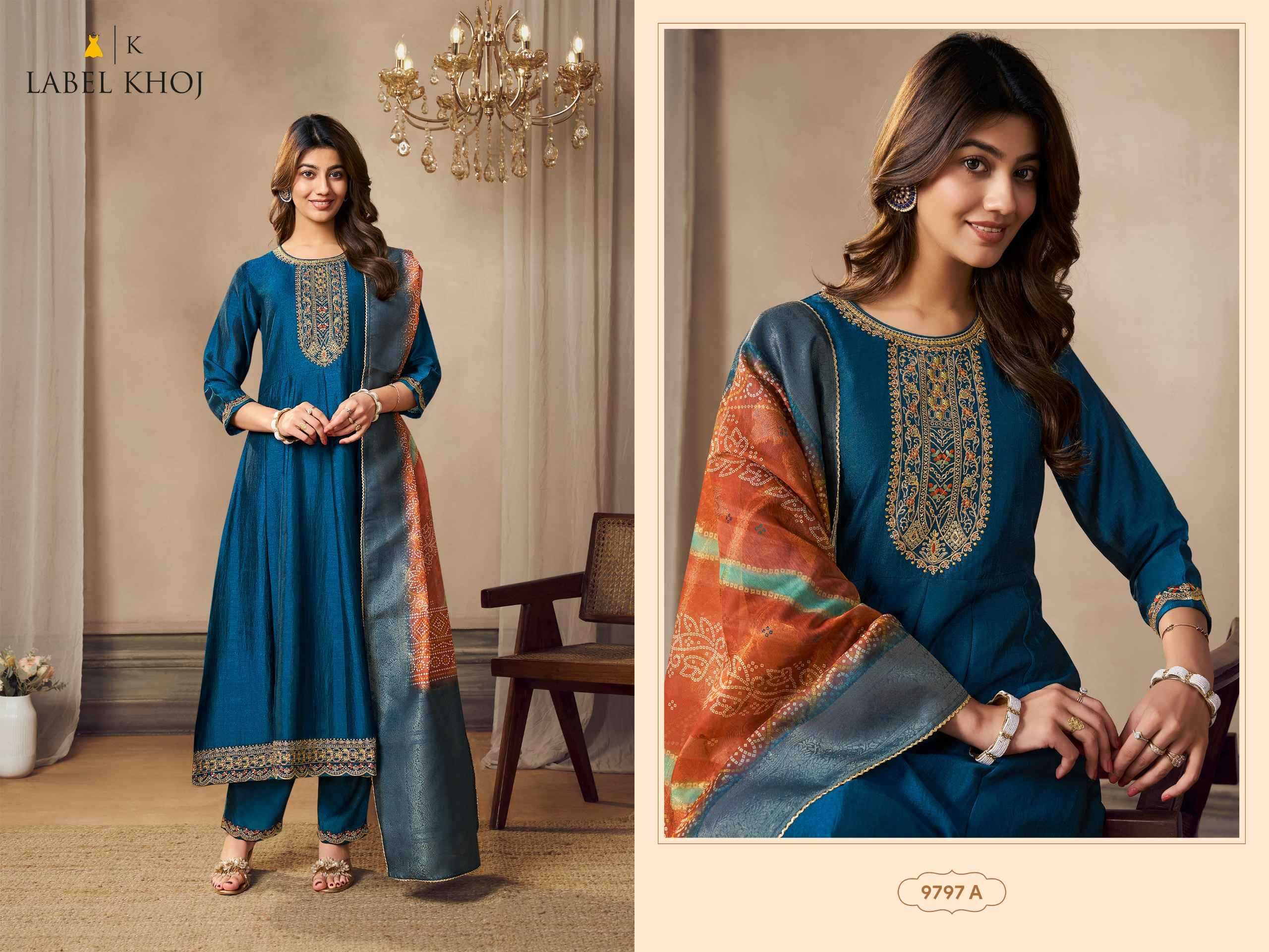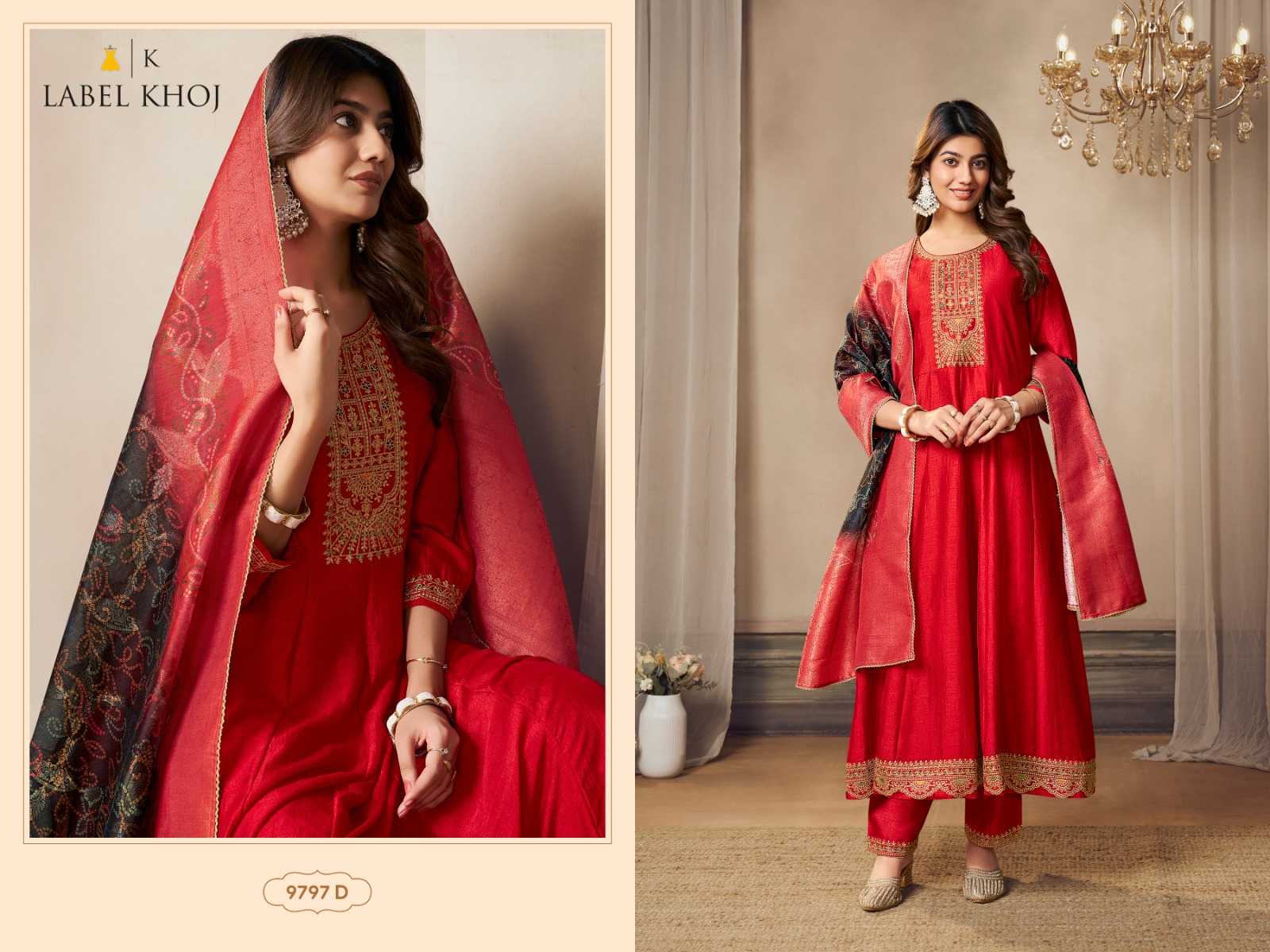 label khoj 9797 heavy embroidery silk readymade anarkali suits