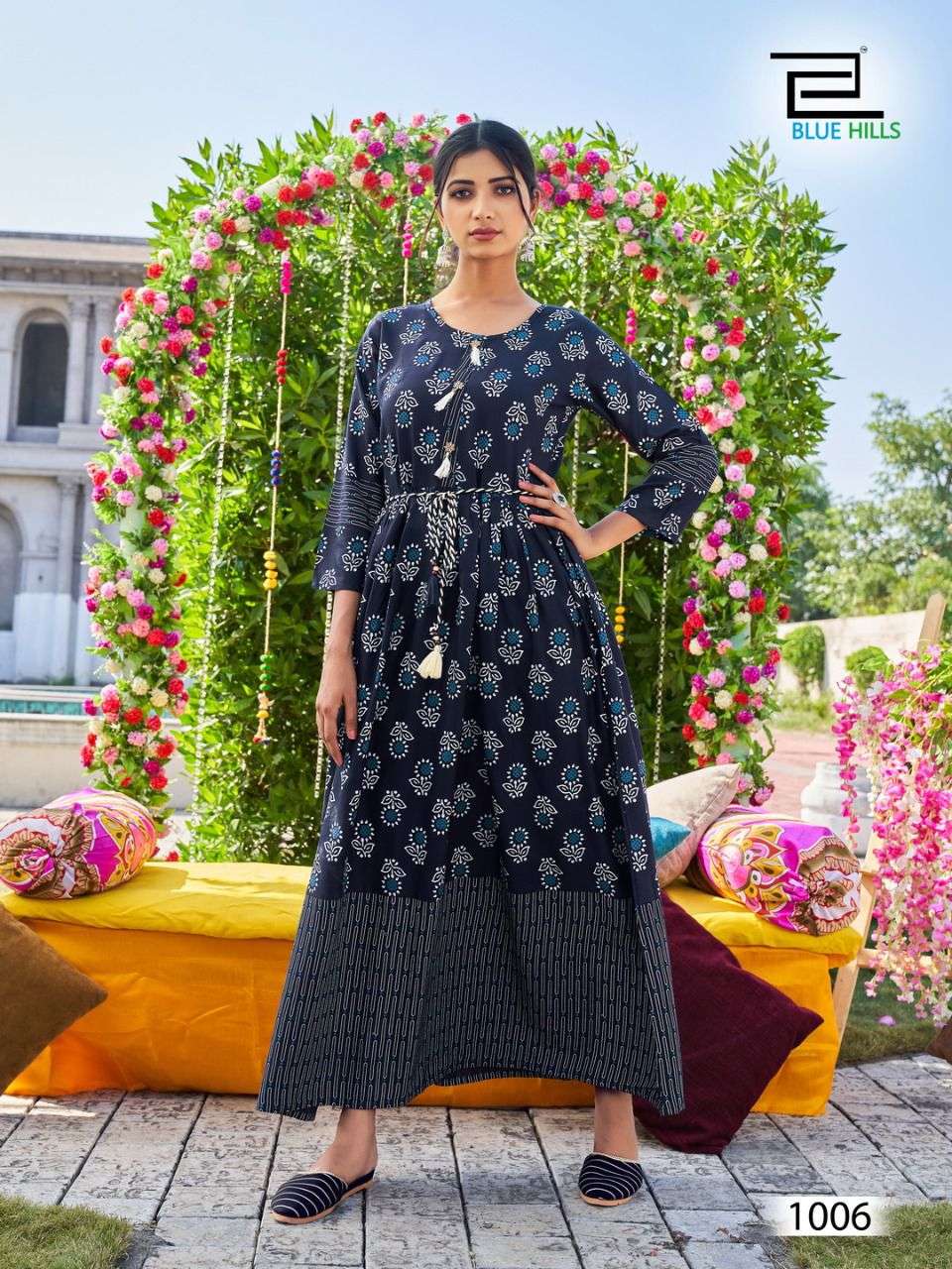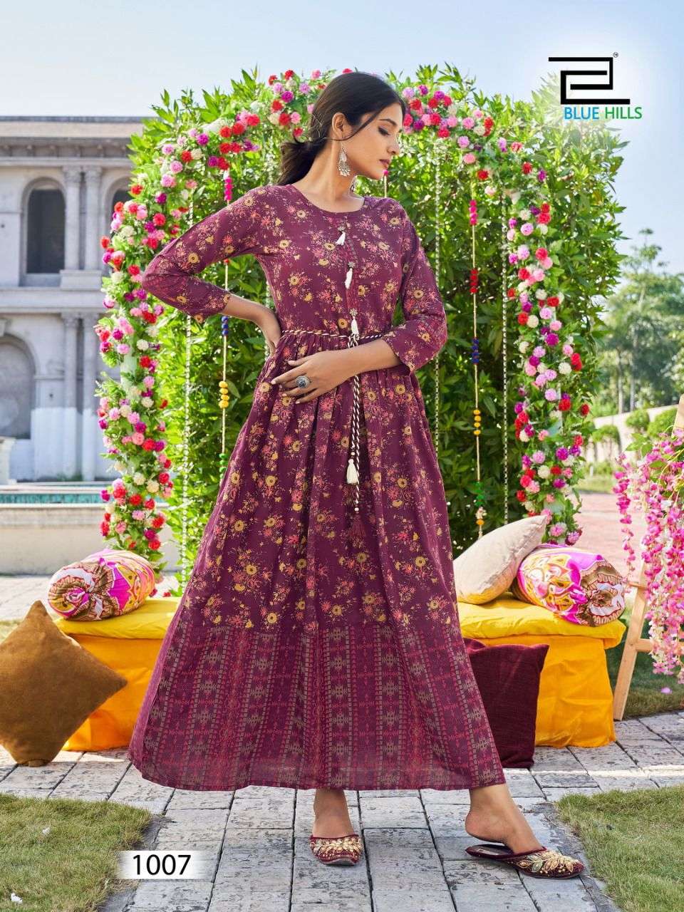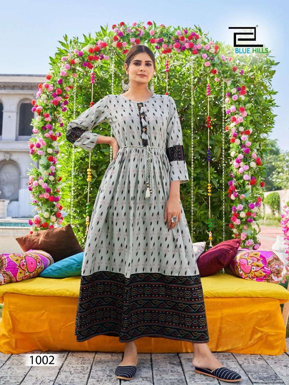 #BLUE HILLS ( KURTI ) Experience the soft touch by wearing these super comfy gown style Kurtis Fabric RAYON 14 KG PRINT Size - M (38) L (40) XL (42) XXL (44) 3XL (46) 4XL (48) 5XL (50) Rate - 599+GST 8 Beautiful Colors and print |
