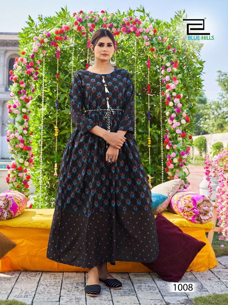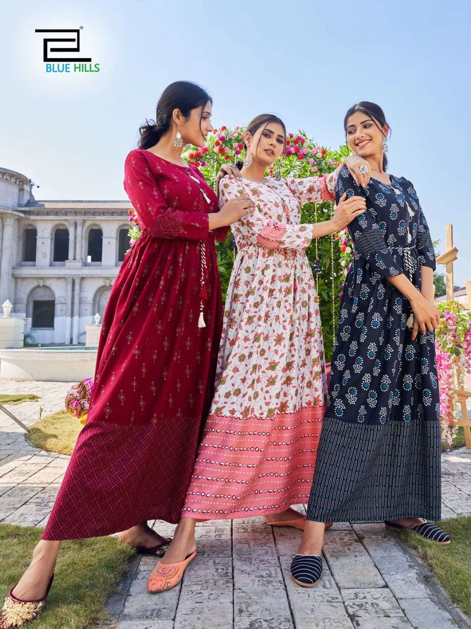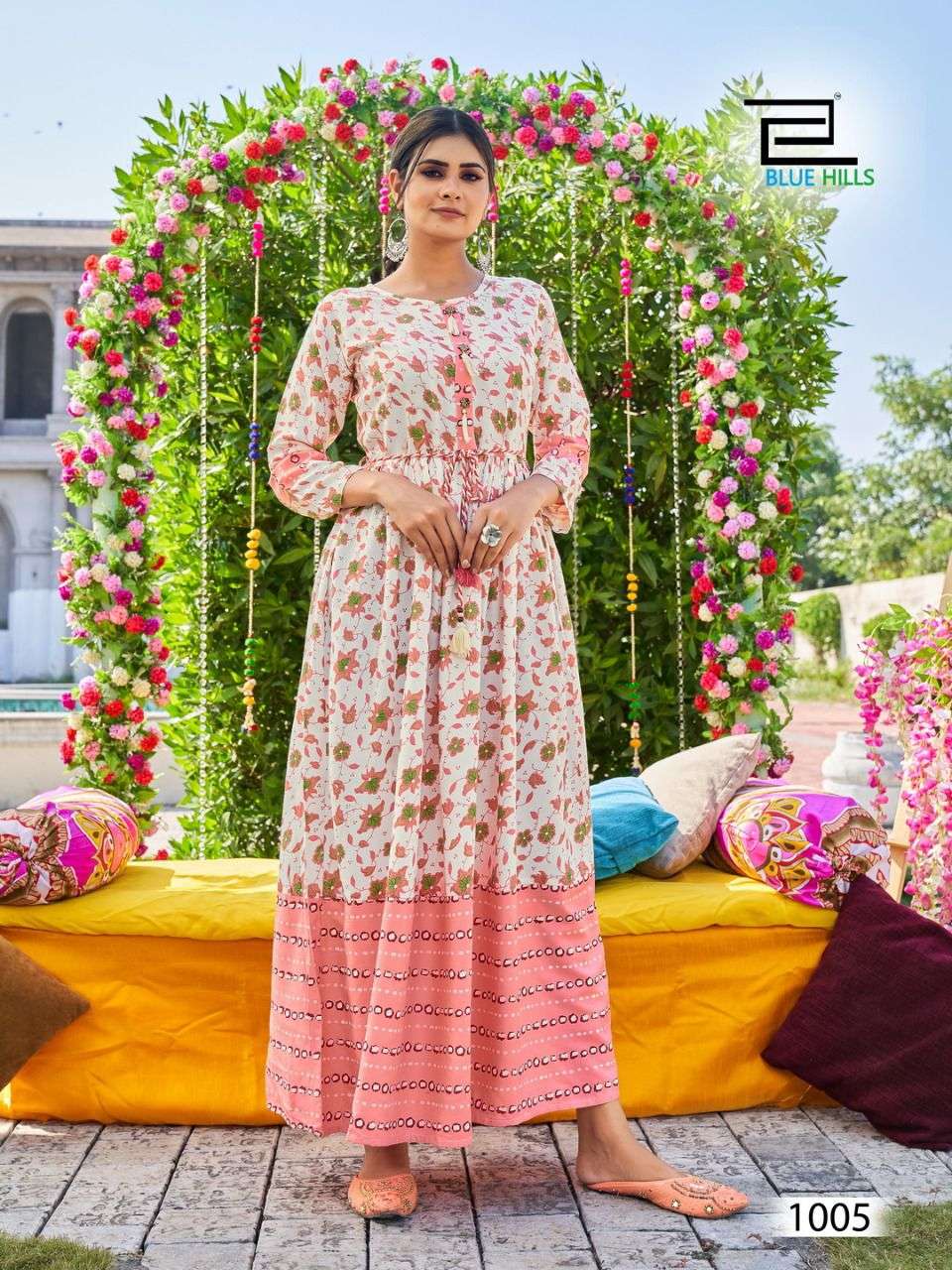 #BLUE HILLS ( KURTI ) Experience the soft touch by wearing these super comfy gown style Kurtis Fabric RAYON 14 KG PRINT Size - M (38) L (40) XL (42) XXL (44) 3XL (46) 4XL (48) 5XL (50) Rate - 599+GST 8 Beautiful Colors and print |