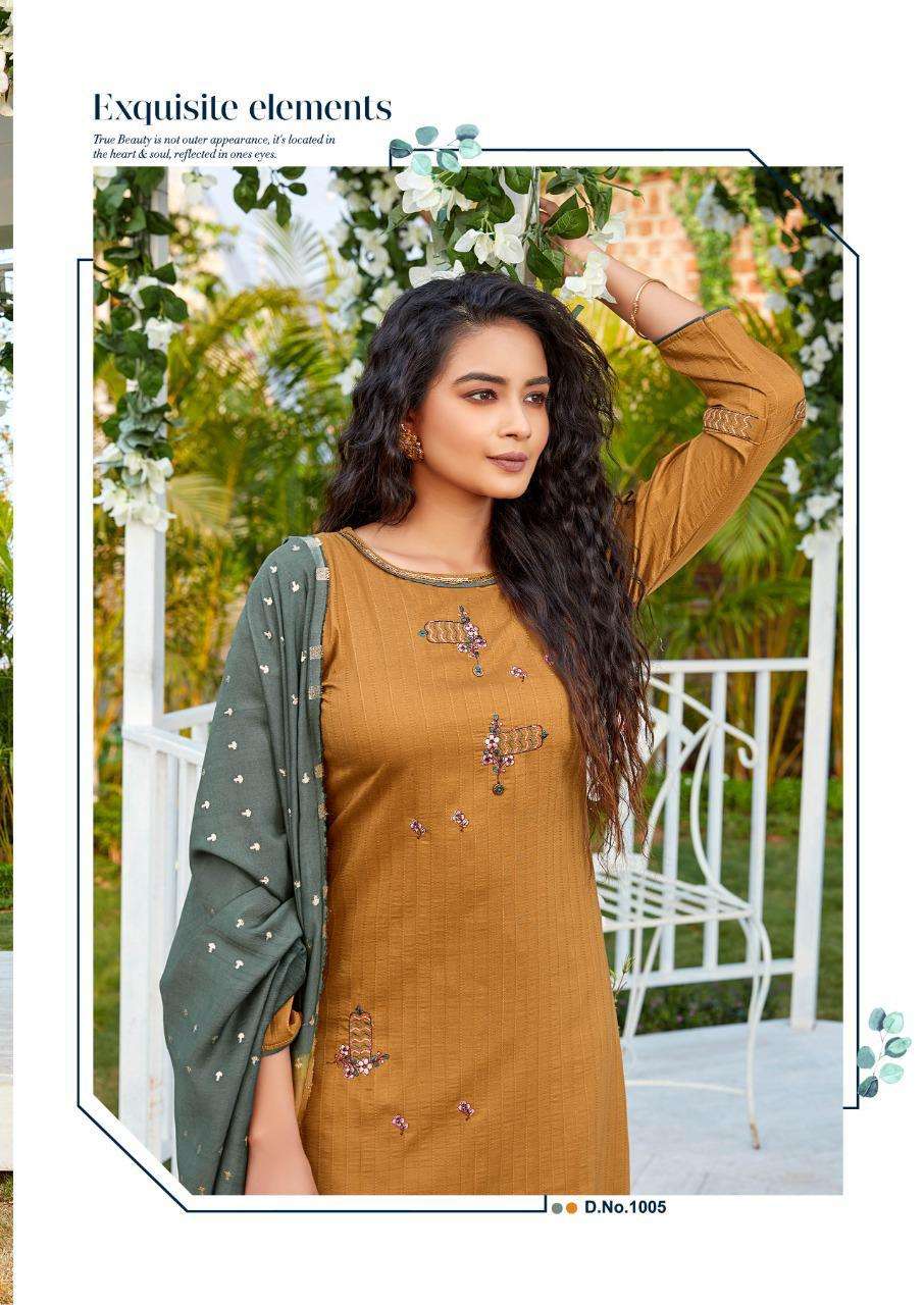 Ladies Flavour Brand Name : Ladies Flavour Catalog : Aarohi Vol 4 Designs : 5 Fabric:- Top :- Chinon lining with Embroidery Work Bottom :- Chinon with Embrodary work Duppata :- Pure Fancy Viscose ( 2.20 mtr cut & 34 Panna) Size : M(38), L(40), XL(42), 2XL(44), 3XL(46)  Rate :- 845/- Set to ser Dispatch :- today  |