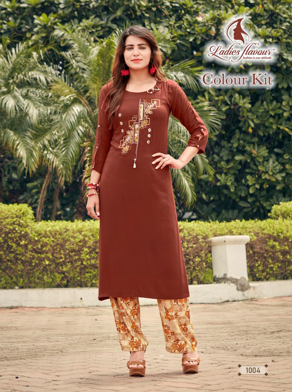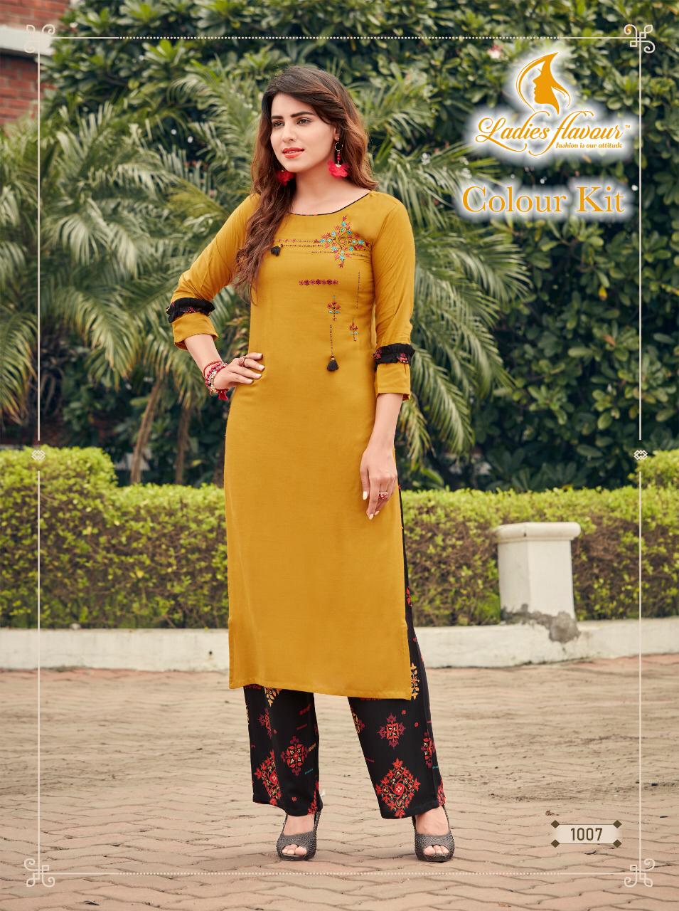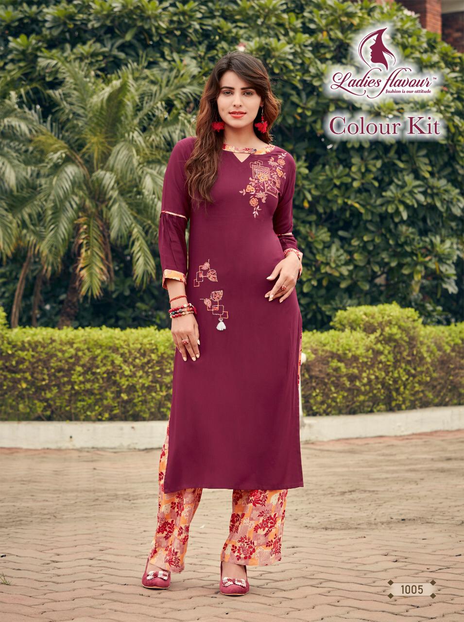 Ladies Flavour Colour Kit Rayon Embroidery Top With Bottom Collection
