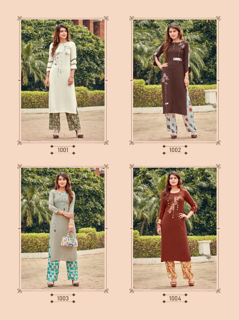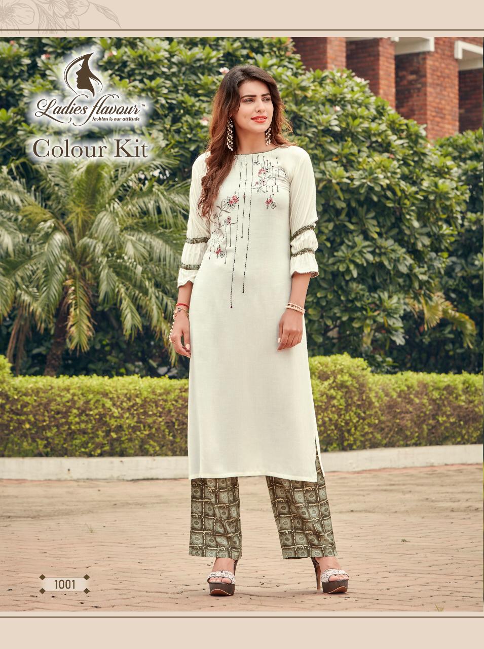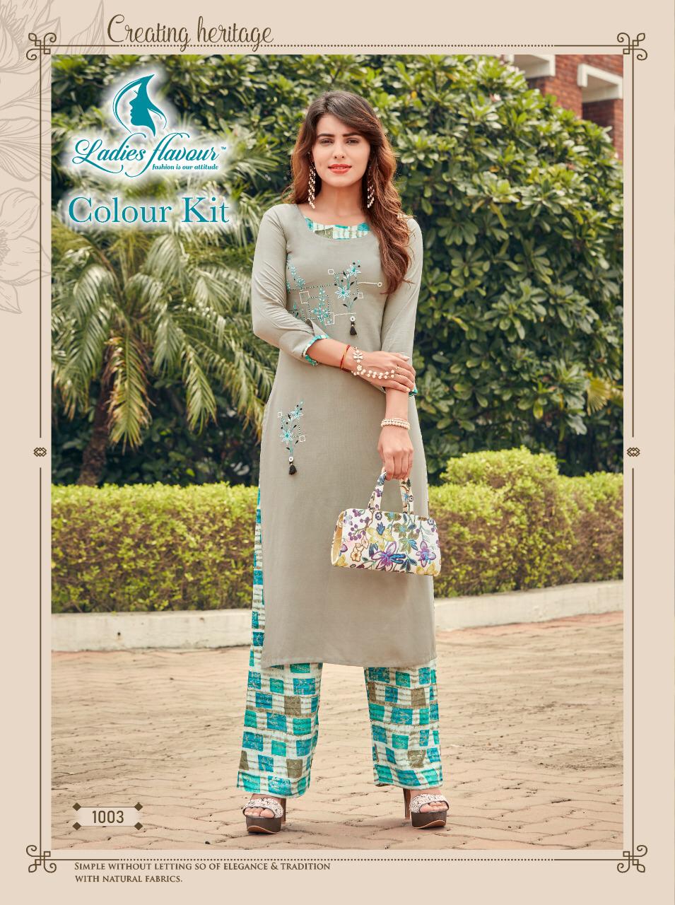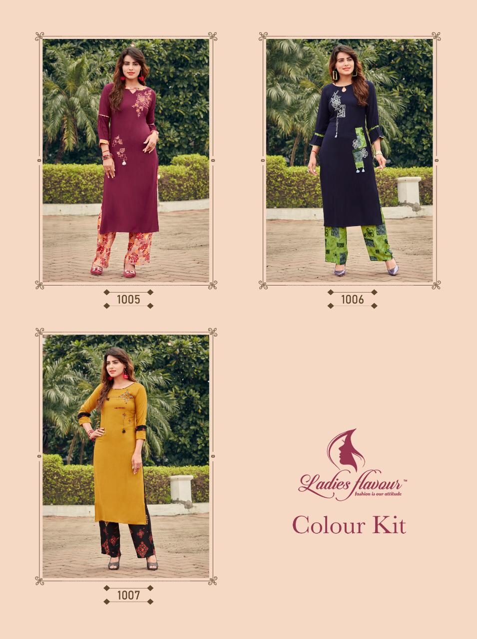 Ladies Flavour Colour Kit Rayon Embroidery Top With Bottom Collection