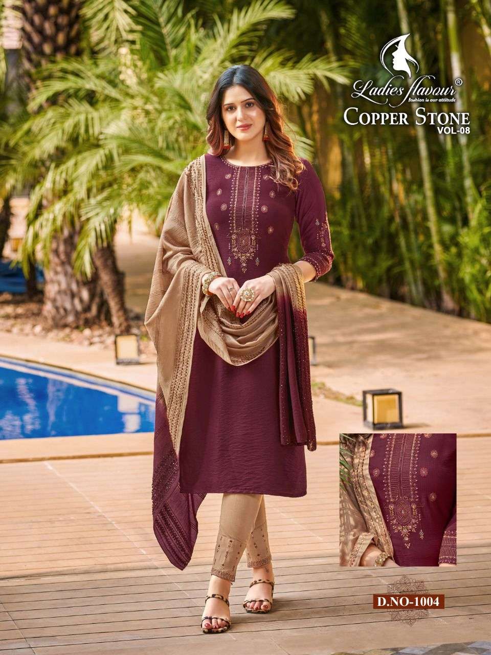 ladies flavour copper stone vol 8 ethnic wear full stitch kurti with bottom & dupatta
