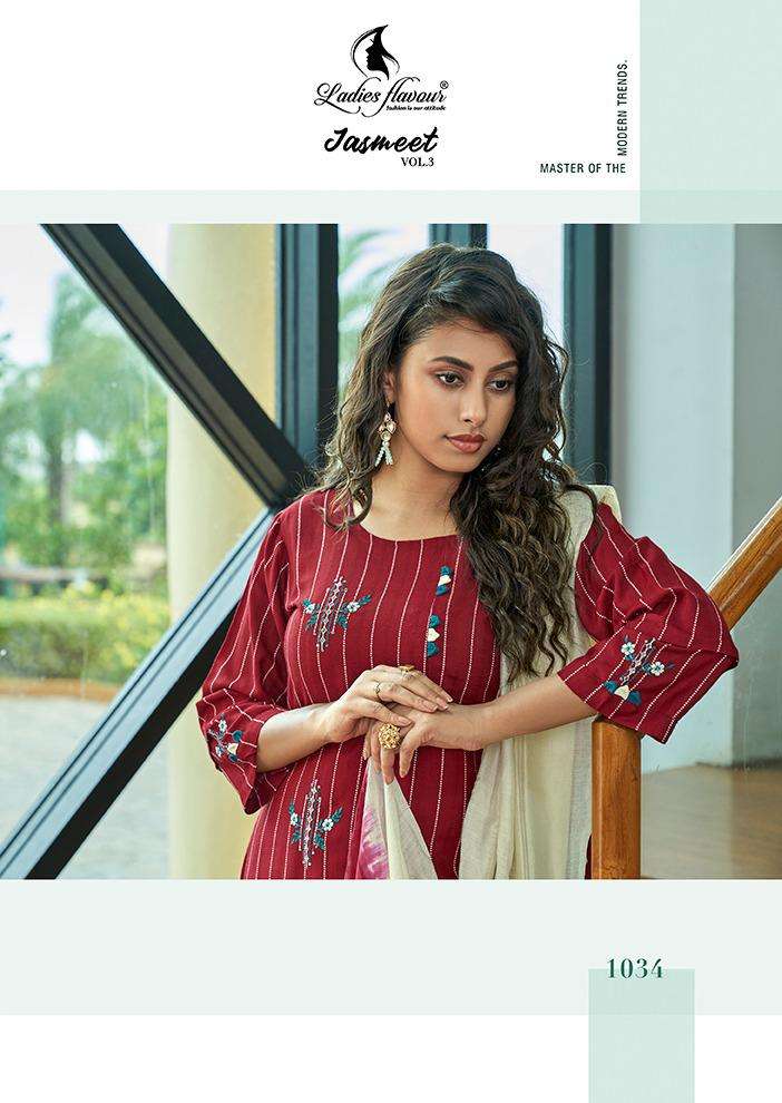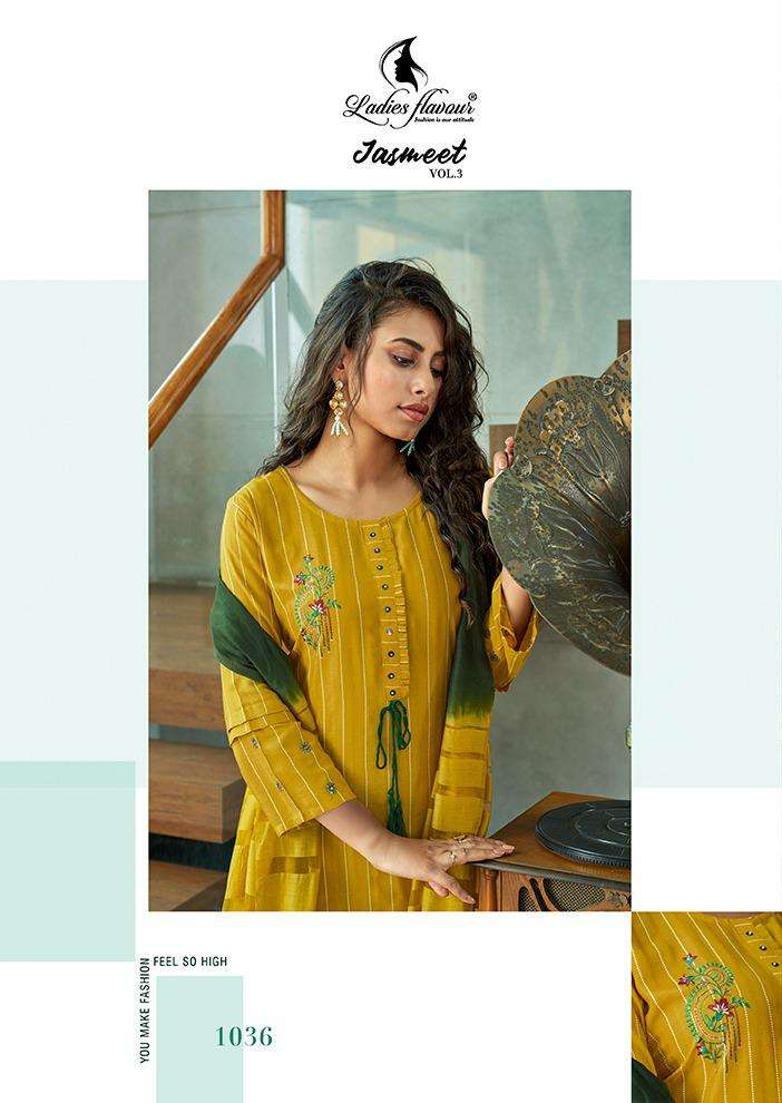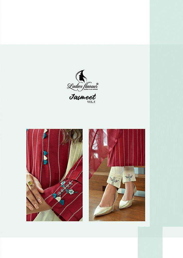 ladies flavour jasmeet vol 3 top with bottom and dupatta readymade collection