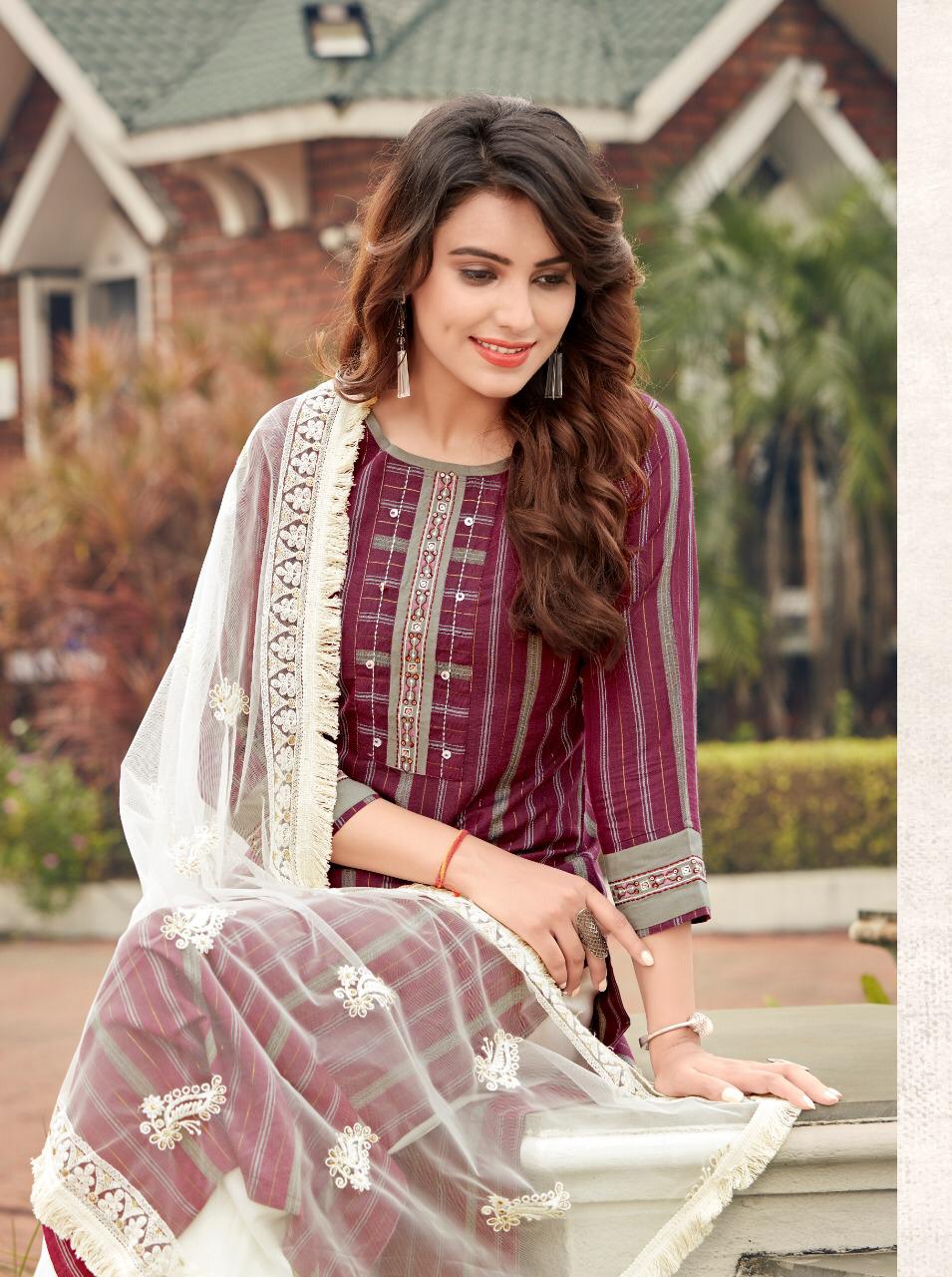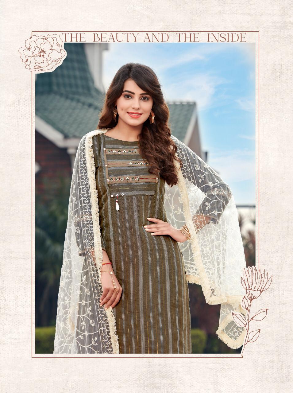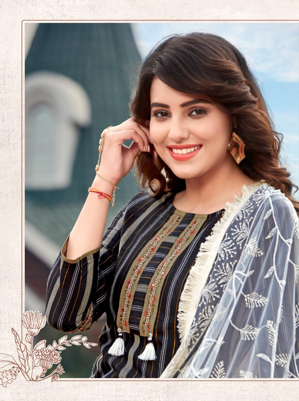 Brand Name : Ladies Flavour Catalog : Lucknowi Designs : 7 Fabric:- Top :- Rayon Lurex with Embroidery Work Bottom :- Rayon With Embroidery Paper Work Duppata :- Lucknowi( 2.20 mtr cut) Size : M(38), L(40), XL(42), 2XL(44), 3XL(46) Rate :- 945/- Dispatch :- Within 3-4 Days |