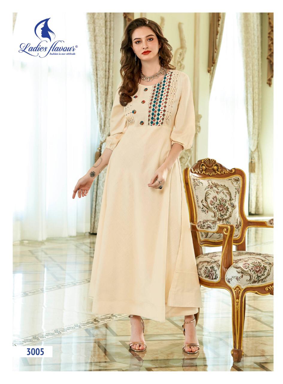 Ladies Flavour Miss Gold Slub With Embroidery Long Kurtis Wholesaler