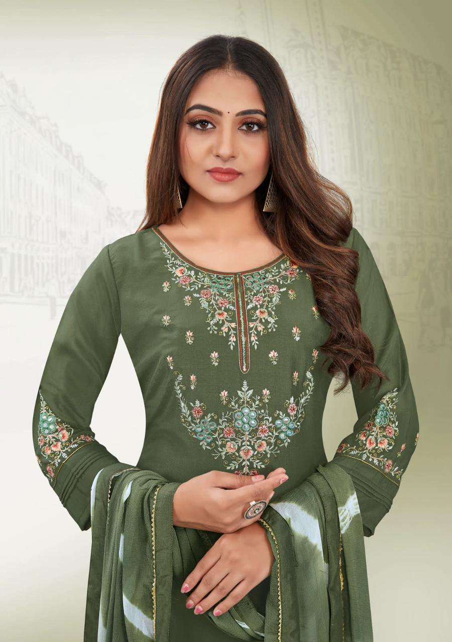 👗 Ladies Flavour👗 Design : 6 Fabric:- Bottom :- Heavy Chinon With Embroidery Work Dupptta :- Chinon Chiffon With Laheriya Print With gota lace (2.20 mtr cut & 36 Panna) Size :M(38), L(40), XL(42), 2XL(44) Dispatch:- Within 2 days |